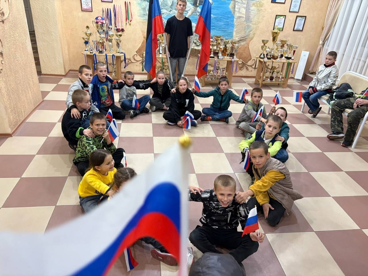 Общественницы поздравили ребятишек с Днем воссоединения Донбасса и Новороссии с Россией и вручили им подарки.