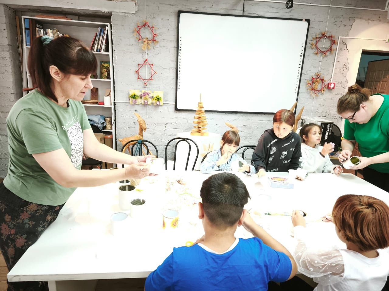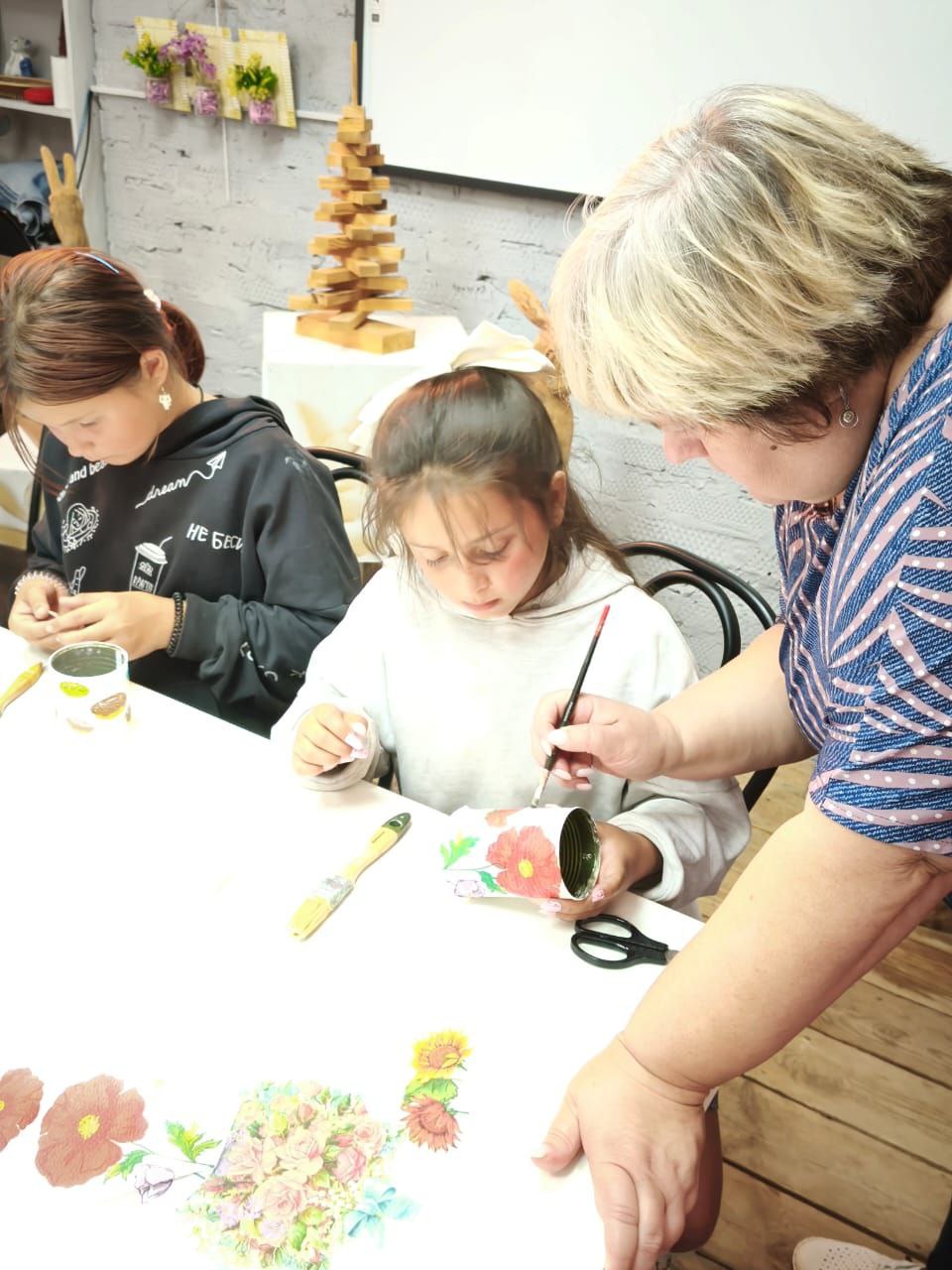 В завершение член женсовета, многодетная мама Светлана Ветрова провела для маленьких участников встречи мастер-класс по изготовлению подставки для карандашей, которая обязательно пригодится в новом учебном году! Дети с большим энтузиазмом сами декорировали подготовленные баночки в технике декупаж.