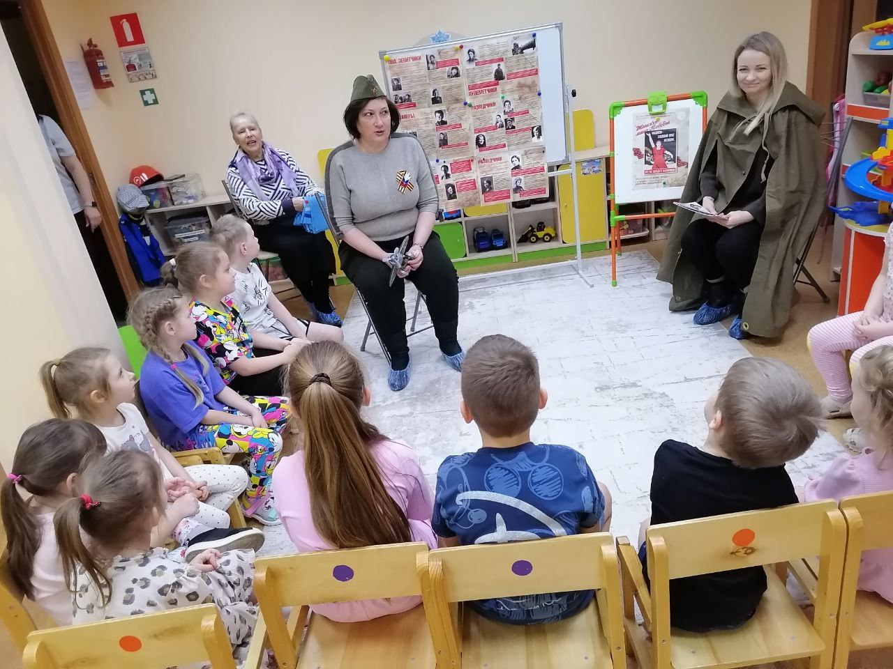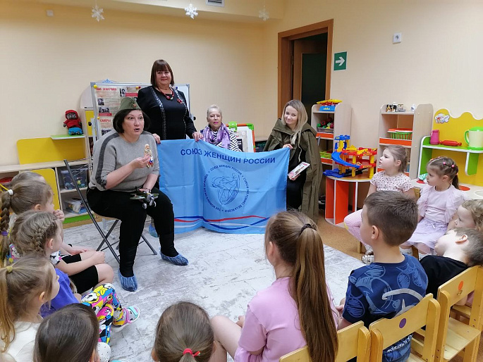 По словам лидера городского женсовета, это был своеобразный урок истории, только адаптированный для маленьких учеников - воспитанников старшей группы детсада. Этой встречей активистки открыли год празднования 85-летия Антифашистского комитета советских женщин*, основателем и первым председателем которого была В.С. Гризодубова.
