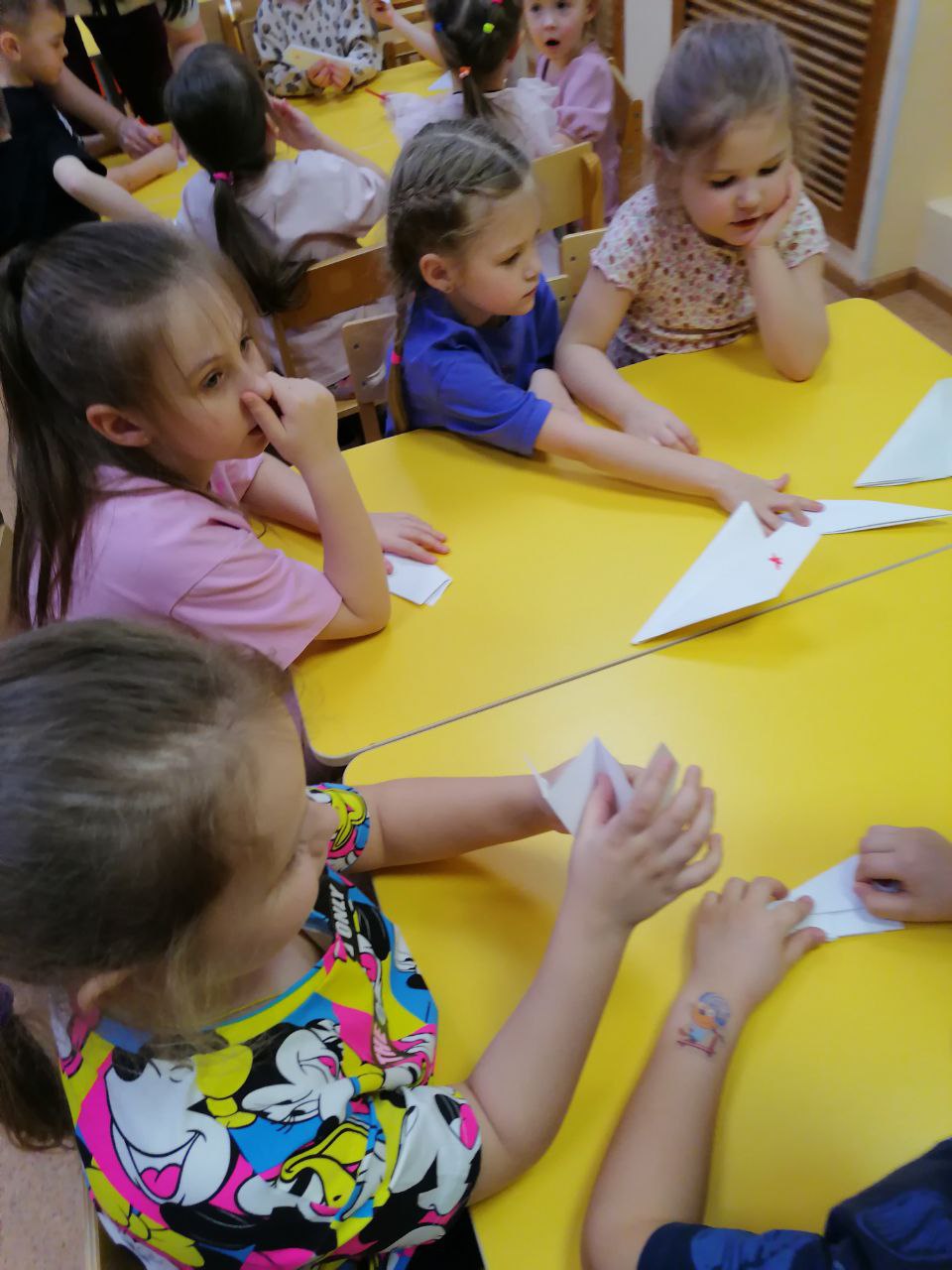 История о женщине-летчике удивила и заинтересовала дошколят. В поддержку ее героических полетов дети под руководством активисток создали из бумаги маленькие самолетики, которые по окончании занятия взмыли в воздух. Восторгу ребятни не было предела.