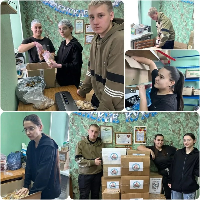 За восемь месяцев существования девять женщин приготовили и отправили на фронт более две тонн готовой еды, это семь тысяч реторт-пакетов. Недавно к волонтерам присоединились школьники, которые помогают клеить наклейки, фасовать печенье и сухари.