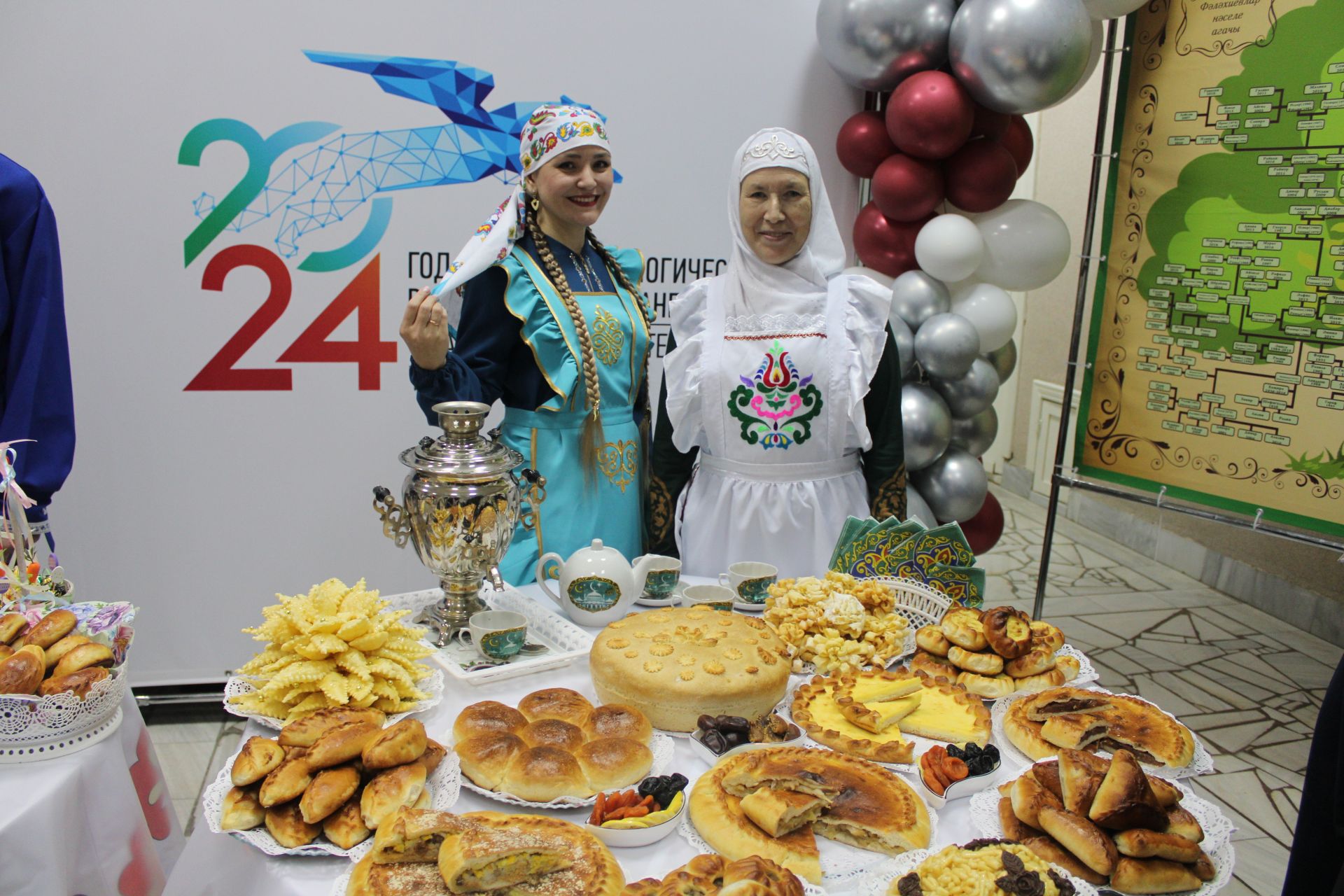 В фойе Дома культуры развернулись выставки мастеров района по номинациям «Фермерская семья», «Моя родословная», «Семейная мастерская», «Национальная кухня».