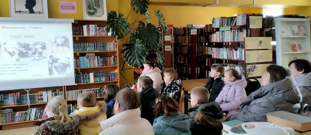 20 февраля в Городенской сельской библиотеке состоялась встреча, посвященная снайперу Полине Ивановне Федоровой, единственной женщине-заслуженному летчику-испытателю Нине Ивановне Русаковой, медсестре Кате Михайловой и другим героиням Великой Отечественной войны. Особое внимание было уделено связи времен. Рассказ о подвигах героинь современности не оставил равнодушным никого из присутствующих. Их имена достойны встать в один ряд с героинями Великой Отечественной: Ранита Мамедова - связист разведывательного батальона в зоне специальной военной операции, Людмила Болилая - первая женщина, удостоенная звания Герой России, Женя Порожнетова – медсестра, стойкость, смелость и преданность делу которой делают её настоящим героем операционной.