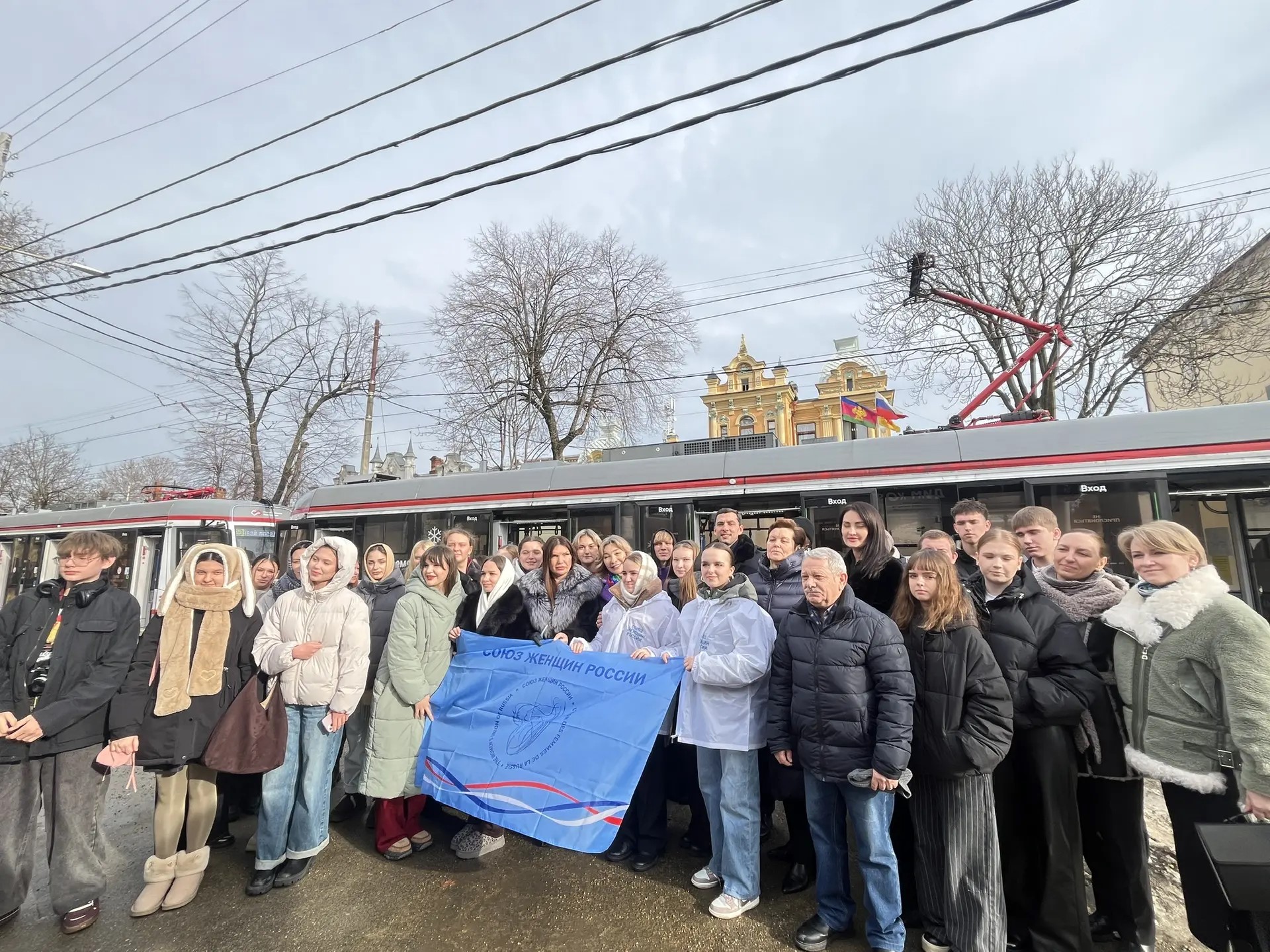 Союзницы совместно с Российским обществом «Знание» провели интерактивную лекцию в городском трамвае, участники которой - студенты и члены РО СЖР - проехали по маршруту, слушая лекцию доцента Краснодарского высшего военного авиационного училища летчиков Ильи Киселева о роли трамвая в осажденном Ленинграде и роли авиационного полка под командованием легендарной летчицы В.С. Гризодубовой в освобождении города от фашистской блокады. Выступление студентов музыкального колледжа им. Римского-Корсакова органично дополнило особую атмосферу события.