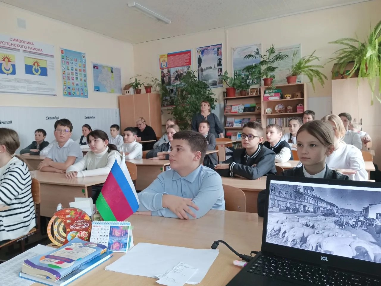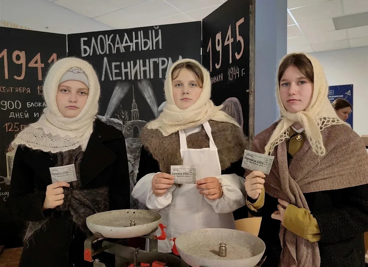 В школе № 4 учащиеся сами создали тематическую экспозицию о подвиге Ленинграда, а руководитель местного женсовета Людмила Буланая провела с детьми беседу, связав историю Великой Отечественной с подвигом современных защитников Родины.