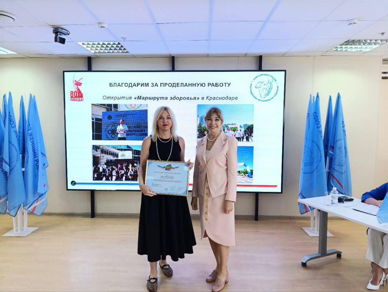 Галина Алексеевна Ермакова вручила благодарственные письма активистам за участие в организации «Маршрута здоровья» в Краснодаре – важного социального проекта, направленного на популяризацию здорового образа жизни.