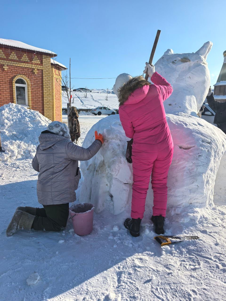 В минувшие выходные в Новоспасском прошёл конкурс снежных скульптур «Зимний хутор - 2026», в котором принял участие районный женсовет. Несмотря на морозное утро, настроение участников было прекрасным, женщины быстро познакомились и подружились с командами соперников. !
