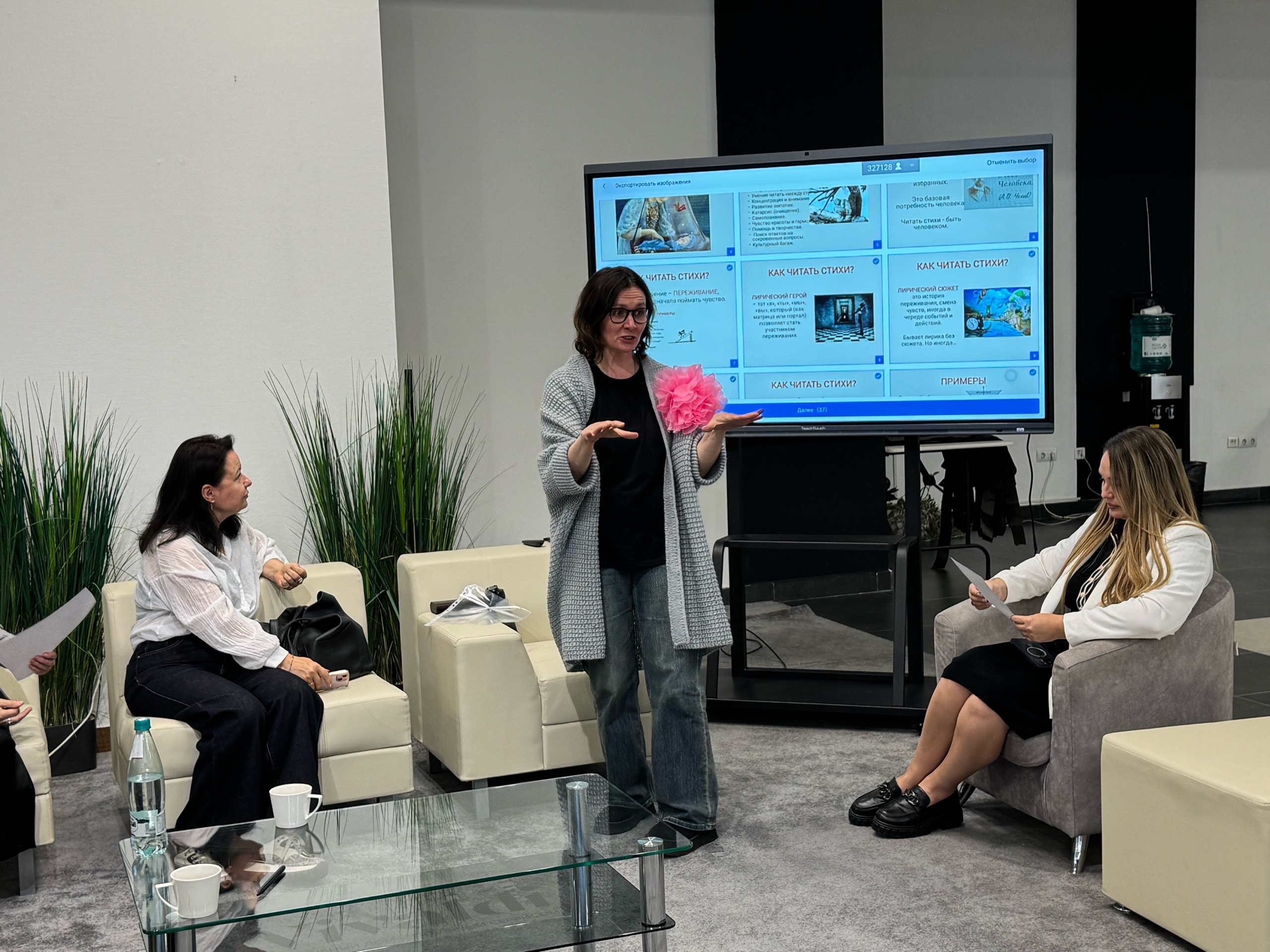 Надежда рассказала об истоках поэзии и о том, что дают рифрованные строки в наши дни. Творческие союзницы поделились своими любимыми произведениями и читали стихи, которые попались рандомно.