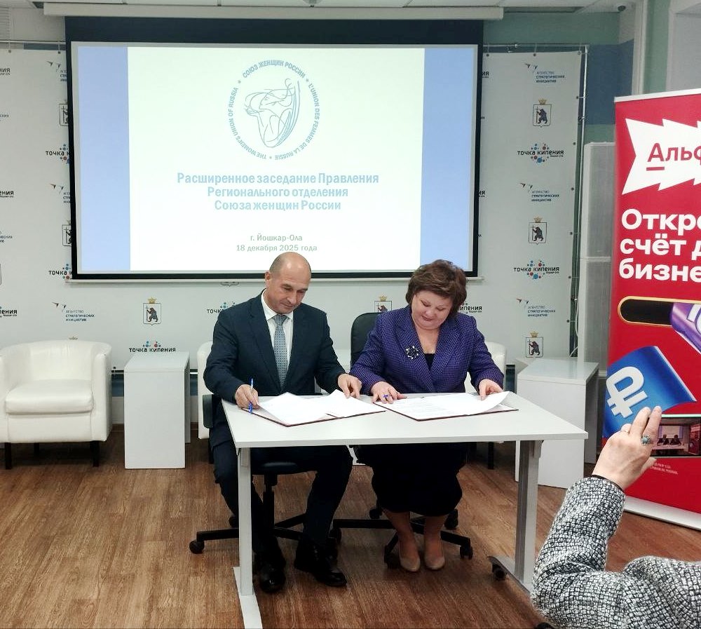 В рамках заседания в торжественной обстановке подписано Соглашение о взаимодействии между филиалом АО «Альфа-Банк» в Республике Марий Эл и региональным отделением СЖР. Представители банка подчеркнули, что рассматривают партнёрство как долгосрочное сотрудничество, направленное на поддержку женщин-предпринимателей региона.