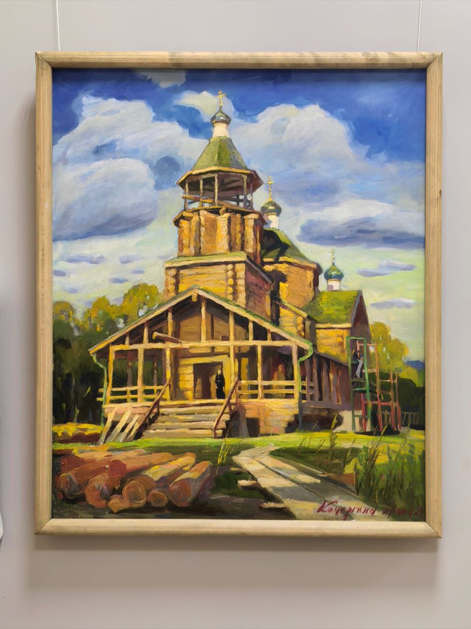 Много картин посвящено строительству в Комсомольске-на-Амуре храма Блаженной Матроны Московской.