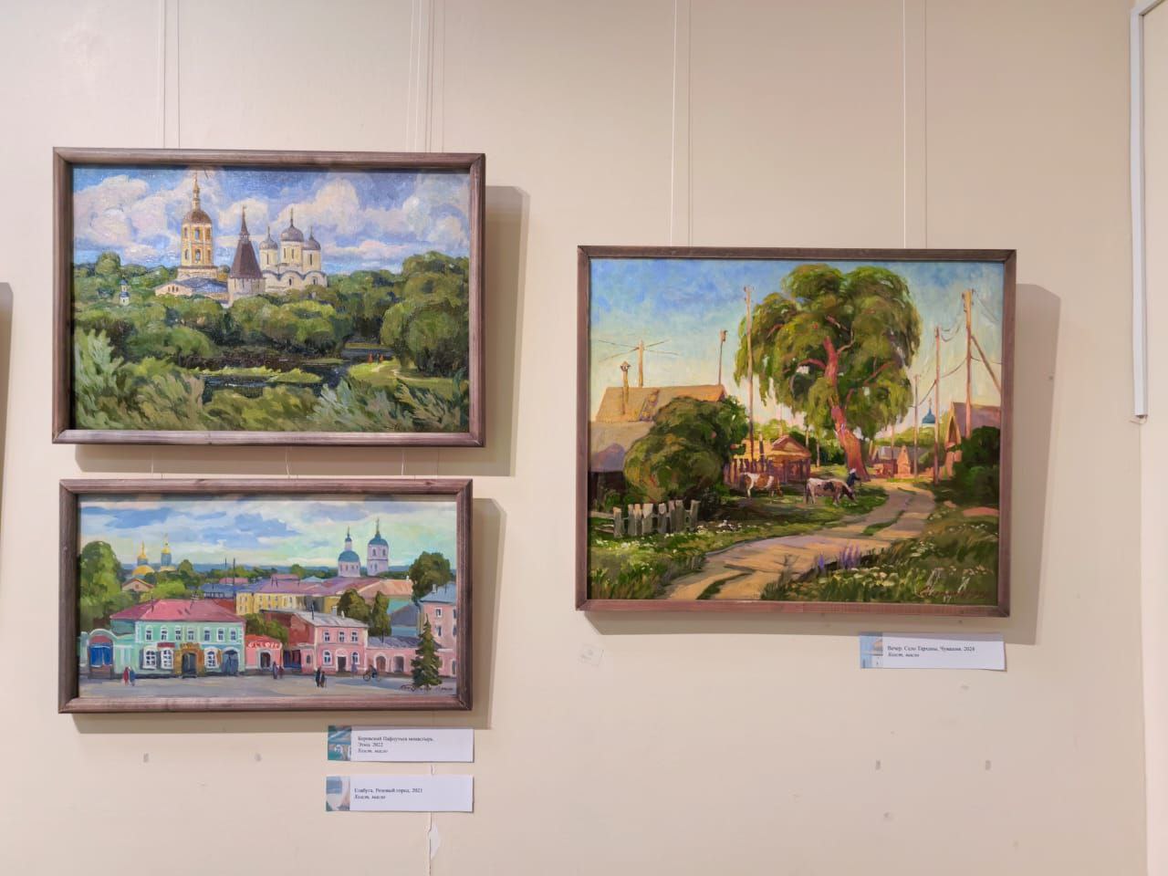 Некоторые представленные работы выполнены во время путешествий по республикам Чувашия (село Тарханы), Татарстан (Казань, Чистополь, Елабуга), Крым (Ялта, Феодосия).