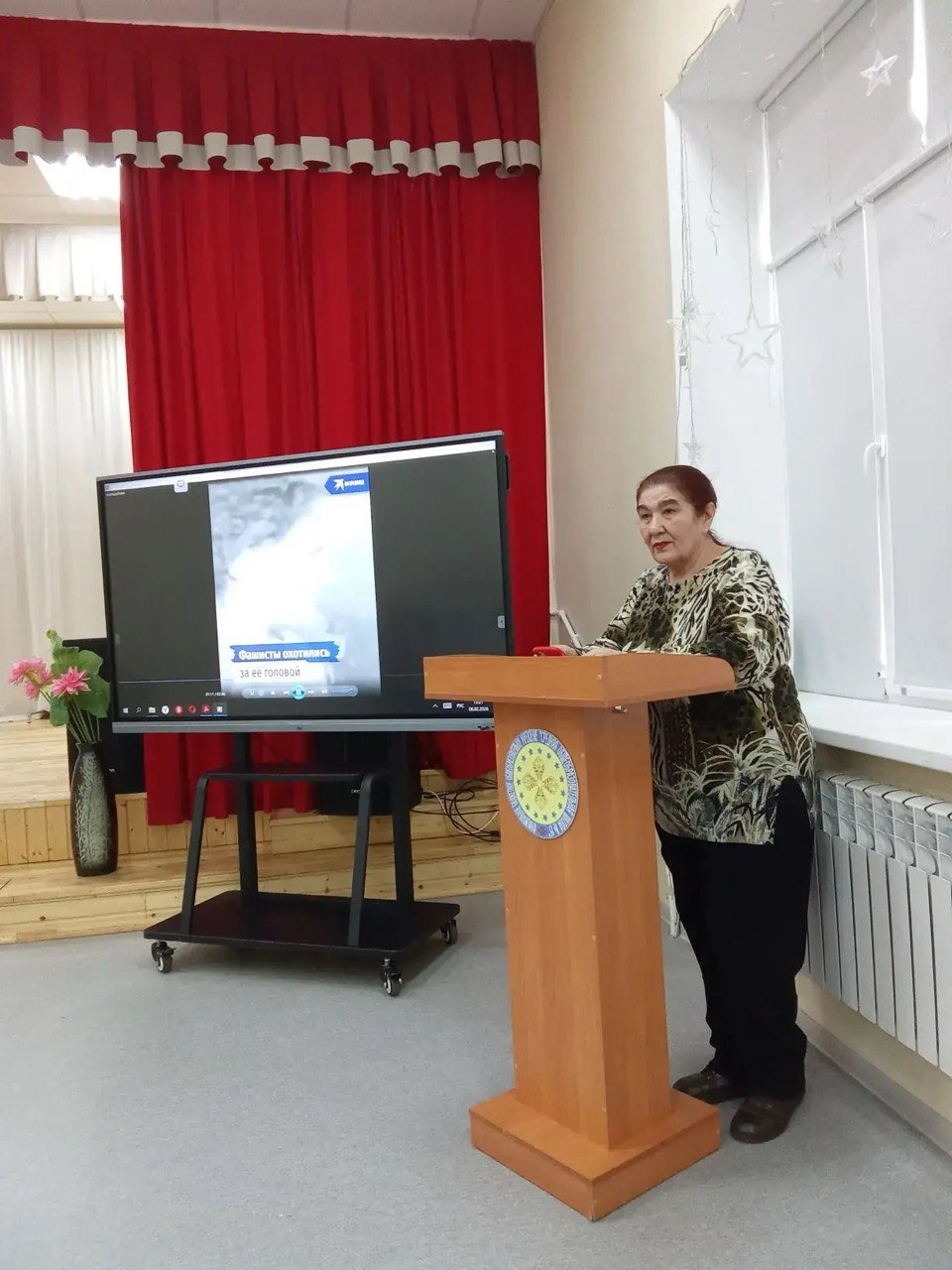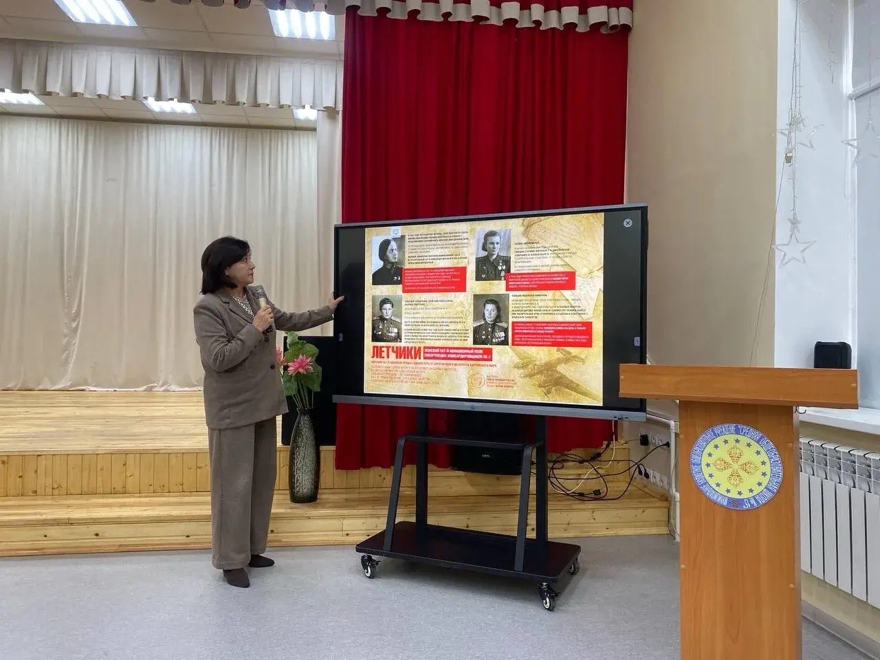 С приветствием к участникам мероприятия обратилась Раиса Манджиевна Саткуева, руководитель музея боевой славы «Защитники Отечества». Она рассказала о славных подвигах летчиц.