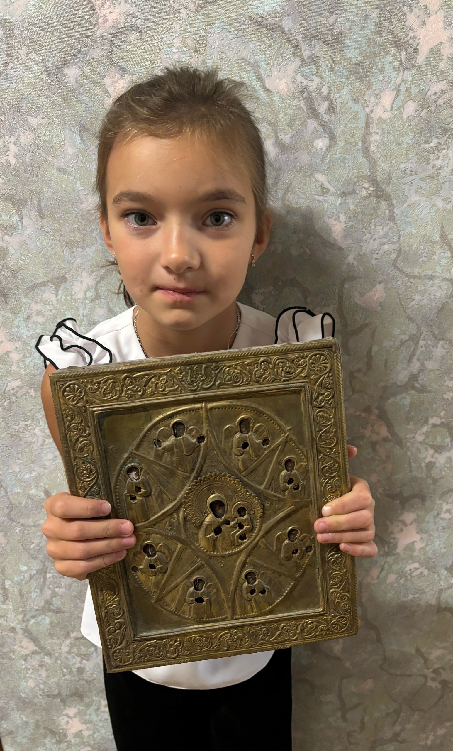 Жигалова Алина семи лет из поселка Ясный Пинежского округа представила на фестивале икону Божией Матери «Неопалимая Купина». Прапрабабушка Поля подарила этот образ прабабушке Нине, когда у нее родился первенец. Это был знак благословения, пожелание защиты и благополучия для нового поколения. Мудрость и вера этих женщин рода - для нас ориентир жизни.