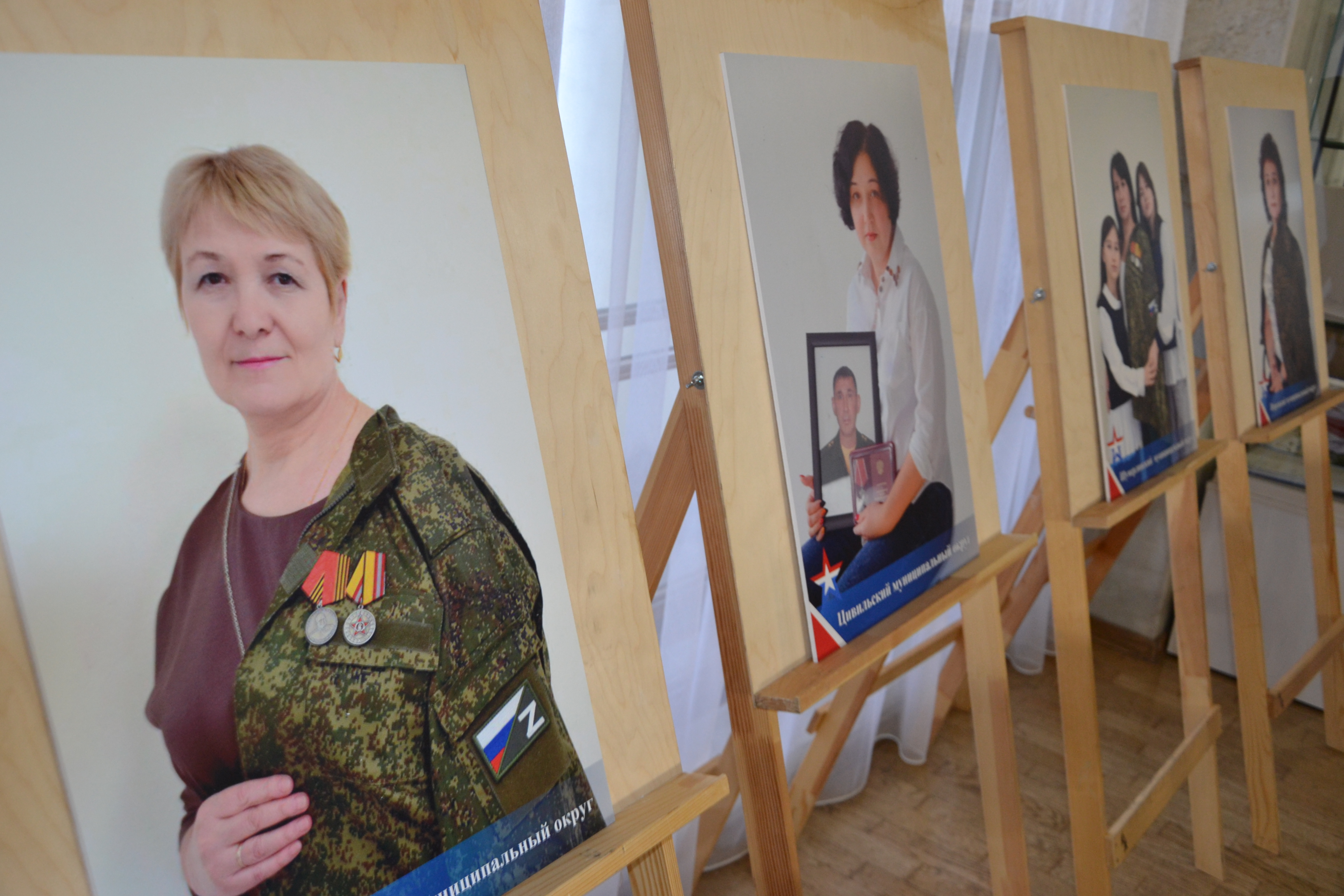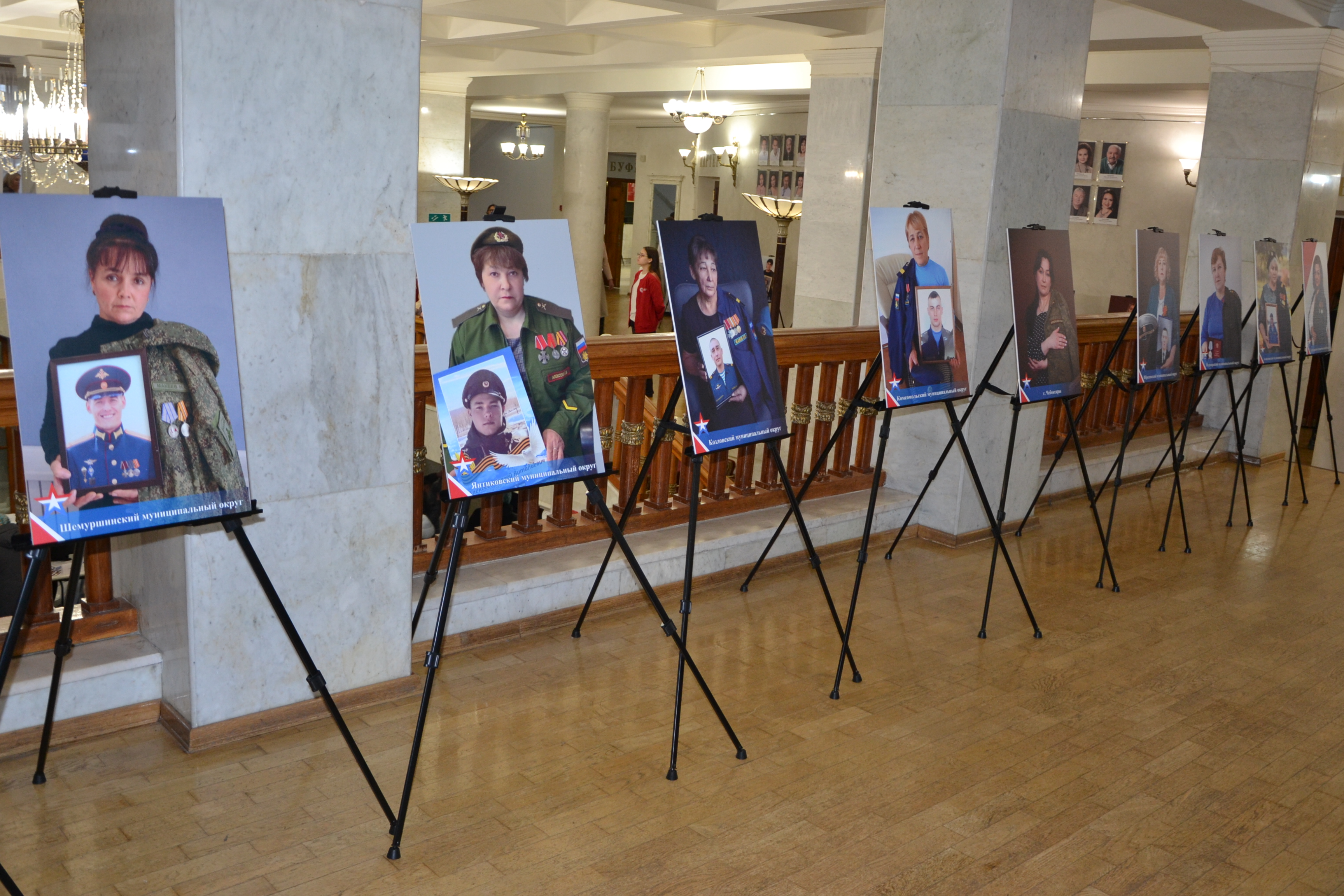 В фойе театра также была размещена фотовыставка «Женщины Героев», подготовленная чувашскими союзницами. В экспозицию вошли портреты матерей и жен бойцов СВО, погибших и сражающихся на передовой.