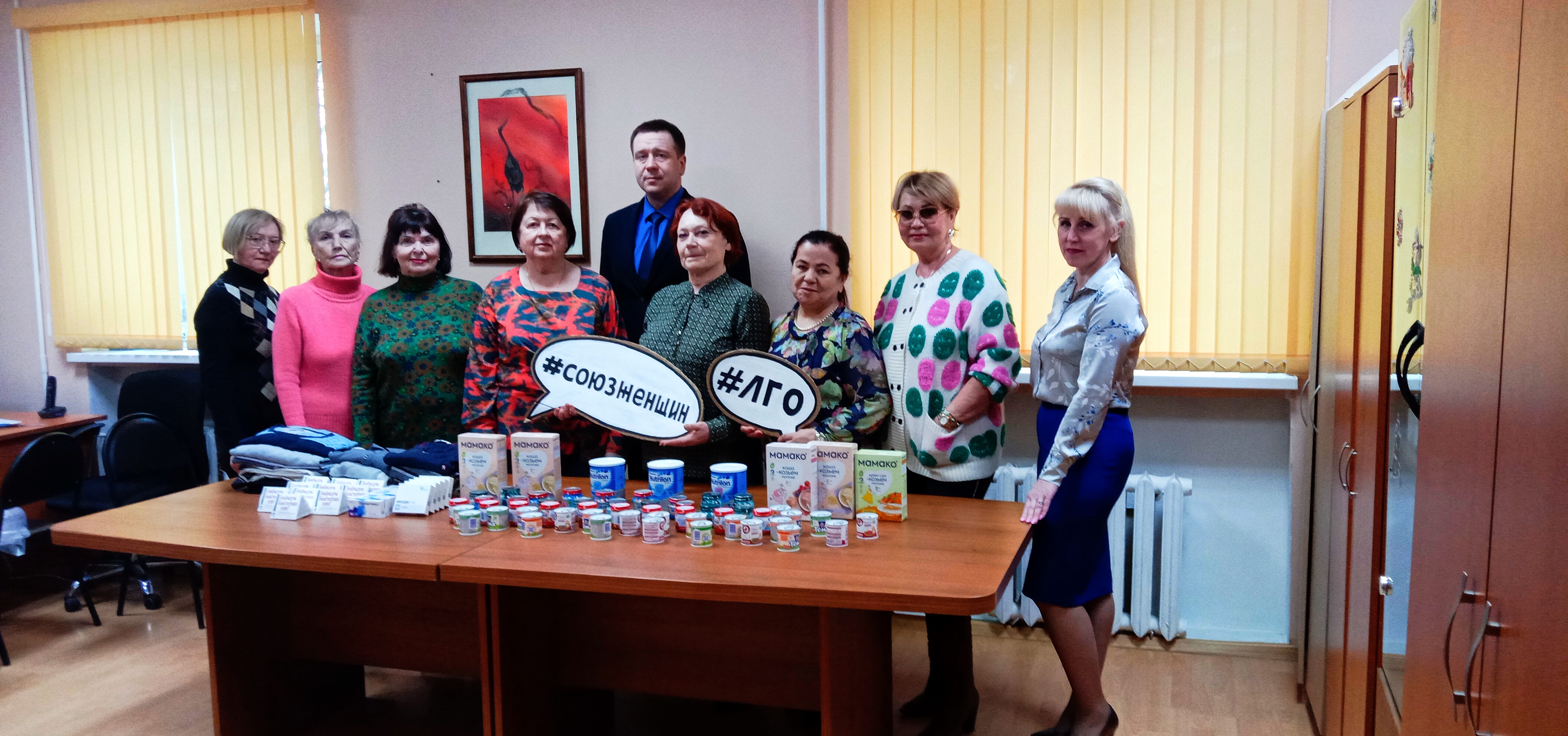 Представители Ленинского отделения Союза женщин России организовали сбор и отправку гуманитарной помощи пострадавшим семьям ЛНР.