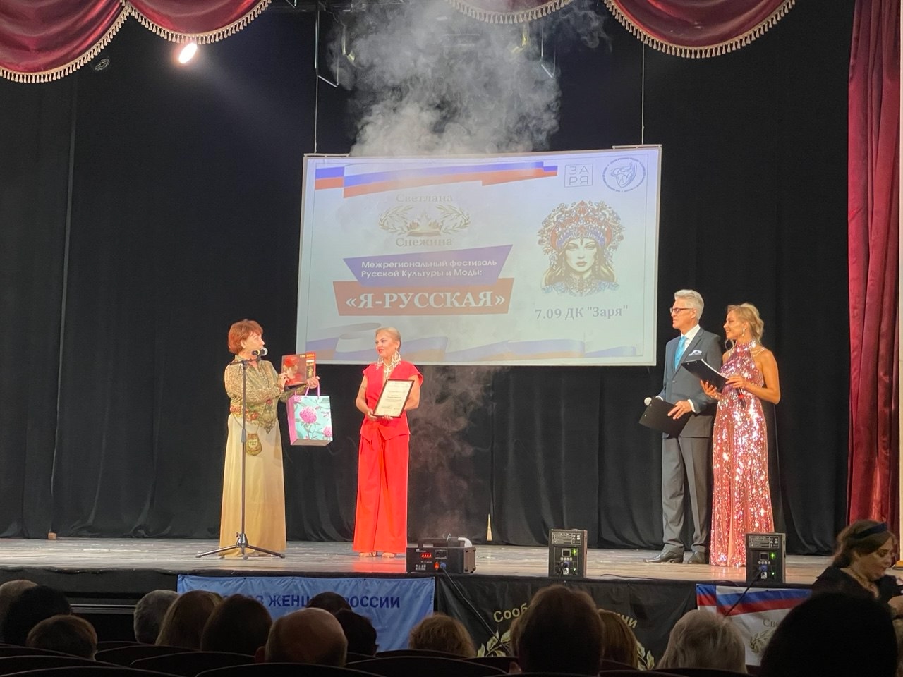 «Я - русская!» - именно под таким названием 7 сентября в Доме культуры «Заря» города Самара состоялся межрегиональный фестиваль русской культуры и моды, идейным вдохновителем и организатором которого выступила член Самарского отделения Союза женщин России, дизайнер и модельер одежды и головных уборов Светлана Снежина при поддержке Союза женщин Самарской области.