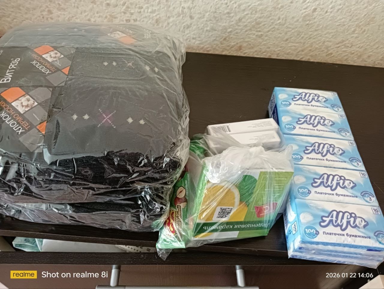 В результате на передовую отправлено 20 комплектов нательного белья, 20 пар тёплых перчаток, 27 пар тёплых носков, 20 пар хозяйственных перчаток.