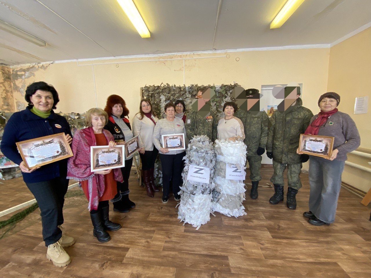 В знак признательности всем женщинам, принимающим участие в плетении маскировочных сетей, были вручены благодарственные письма от командования военной части.