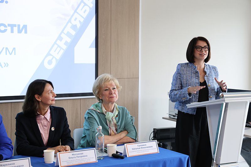 После пленарного заседания участницы направились к работе в тематических секциях. Н.Н. Гришина выступила модератором сессии «Сила женских сообществ: помощь и возможности».