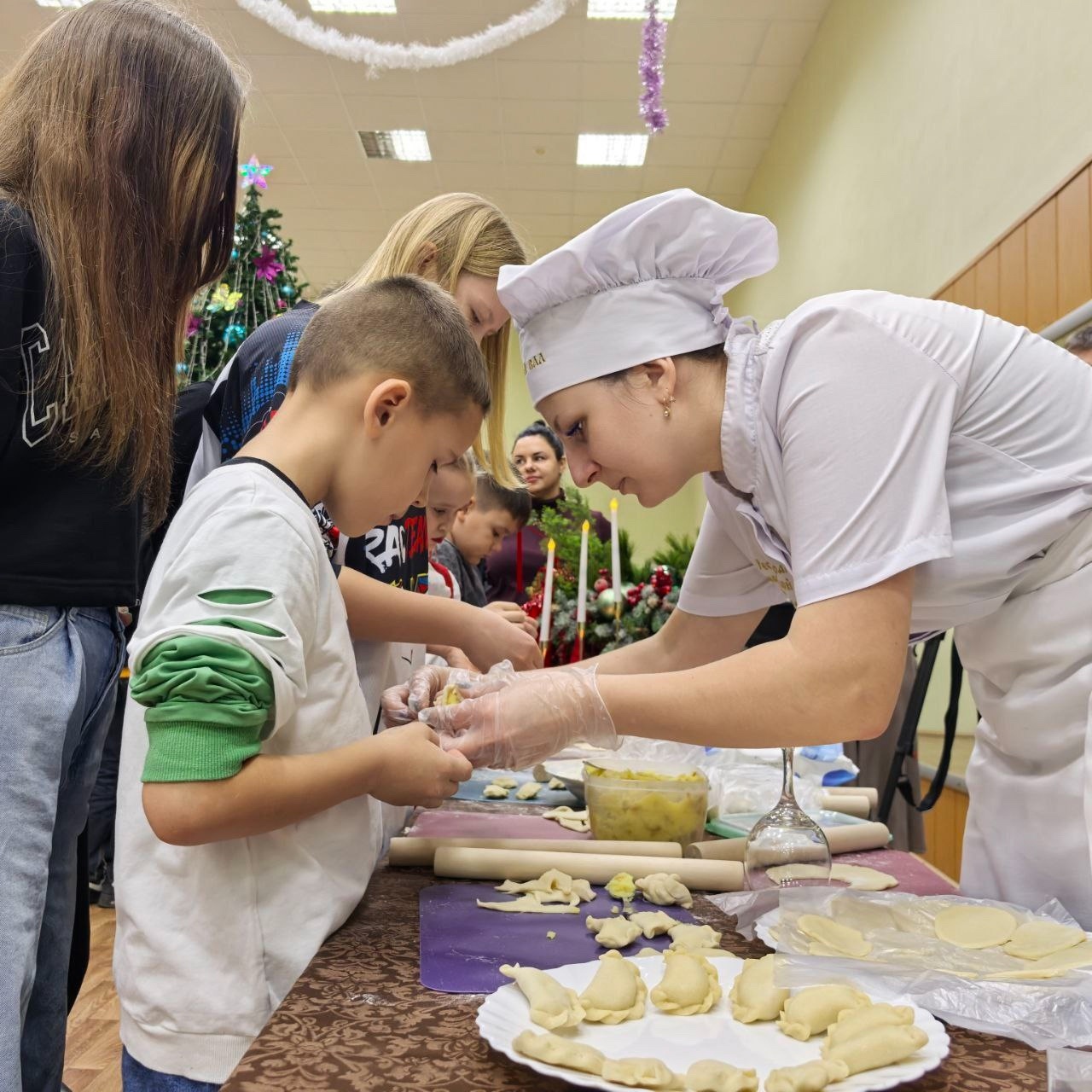 Активистки женсовета провели для детей кулинарный мастер-класс по лепке вареников, которыми затем угостили всех желающих.
