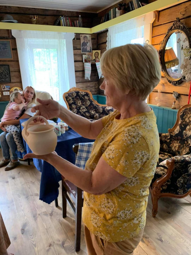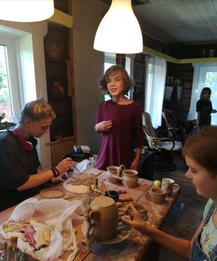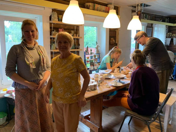 А также, Галина Михайловна познакомилась со школой гончарного мастерства Анны и Сергея Лозовских, увидела экскизы росписи панно поверхности забора (автор Даша Саутенкова) и выставку работ участников детской художественной студии «Арт-Сарай» ( рук. Георгий Петров и Ксения Петровой - Босенко) у Строгановских амбаров.