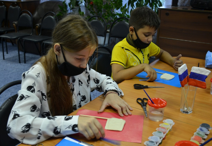 В практической части мероприятия ребята узнали о технологии приготовления соленого теста, а затем слепили из него флаг и раскрасили свою творческую работу в цвета триколора.