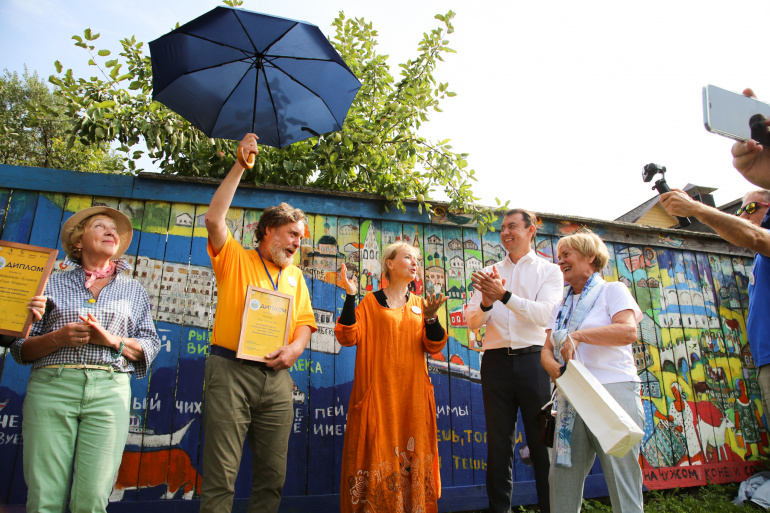 Кульминацией праздника творчества стало открытие монументально-декоративной росписи на 1-й Овражной улице, в народе больше известной как роспись забора дома художников Комовых. В этом году автор росписи Ольга Мотовилова-Комова закончила этот большой проект, послуживший началом Первого фестиваля 2020 года в Тутаеве. Город получил в подарок самый настоящий музей живописи под открытым небом. Фактически целый квартал высококлассной монументальной живописи, аналогов которой нет в России.