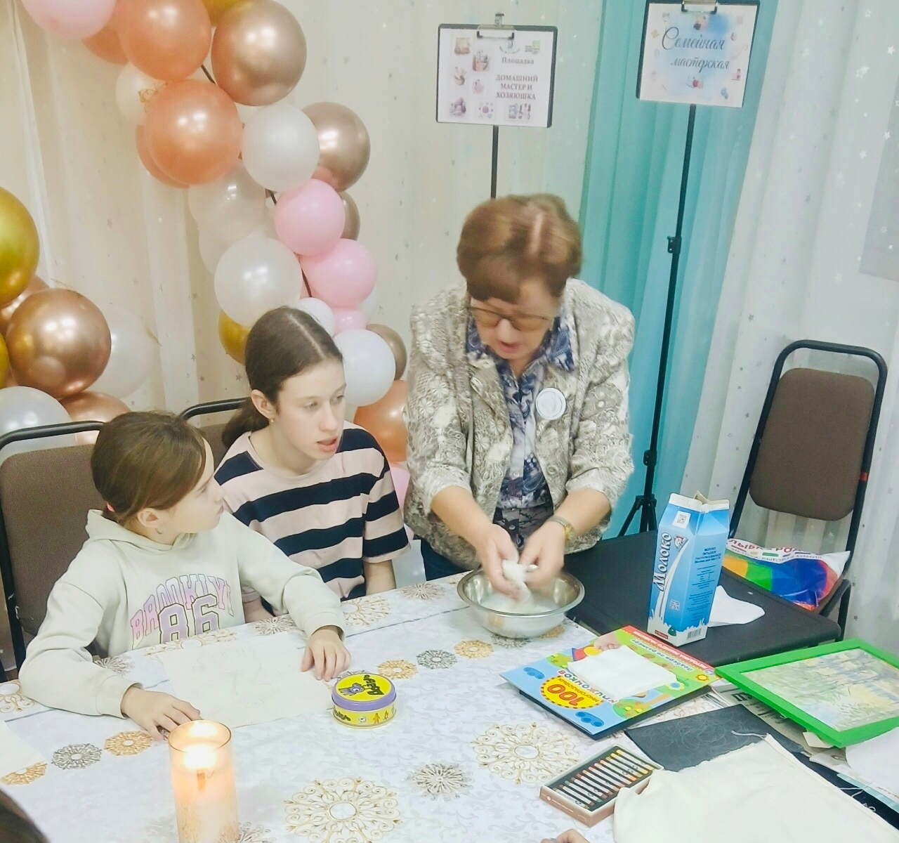 Активистки Пудожа научили детей печь кексы и рисовать на молоке