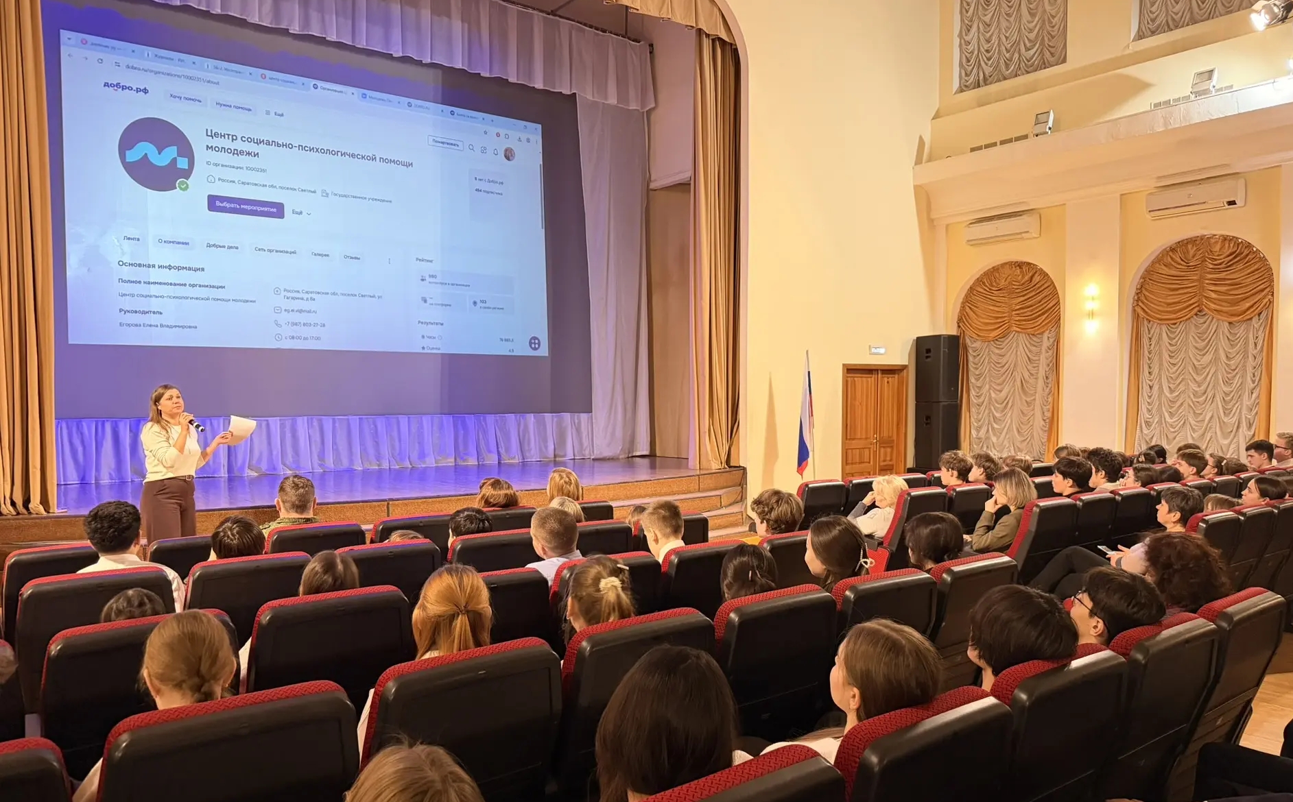В предуниверсарии Саратовского медицинского государственного университета состоялась встреча будущих студентов-медиков с членами Правления регионального отделения Союза женщин России: председателем Фрунзенского женсовета Ольгой Александровной Дубовой и активисткой женсовета ЗАТО Светлый Еленой Юрьевной Власовой. Цель мероприятия - привлечение молодых людей к общественно полезной работе.