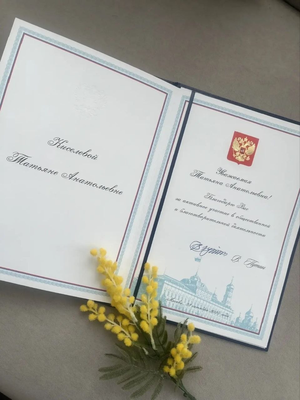 Благодарственных письмем Президента Российской Федерации Владимира Владимировича Путина за активное участие в общественной и благотворительной деятельности удостоены: