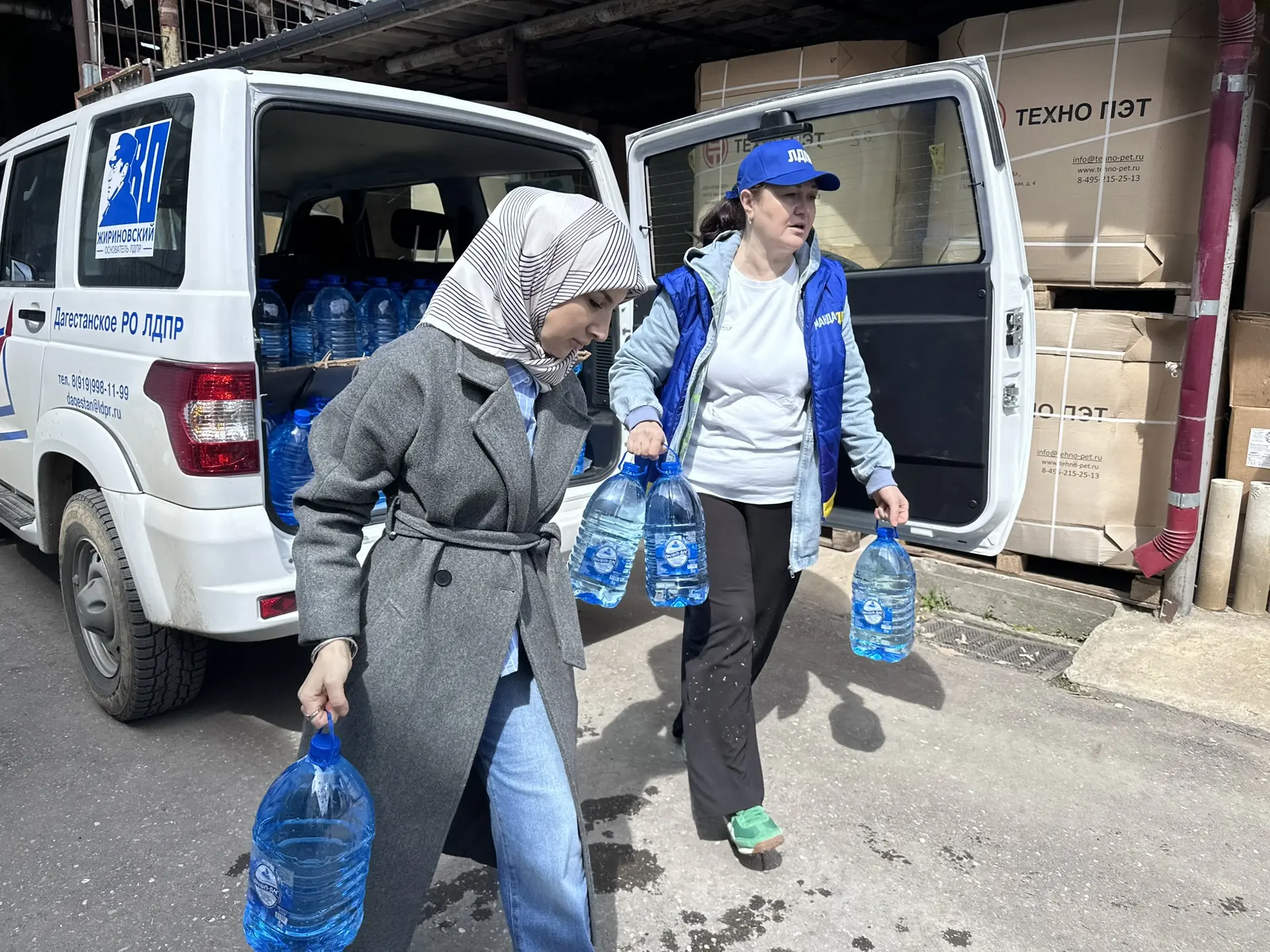 Председатель Союза женщин Дагестана Хасайбат Валиева совместно с активными членами организации — Эльзой Маметовой, Зубайдой Нуровой, Сабиной Алибеговой, организовали благотворительную акцию по раздаче питьевой воды нуждающимся. Также в акции приняла участие заместитель координатора Дагестанского отделения ЛДПР Мадина Ибрагимова.