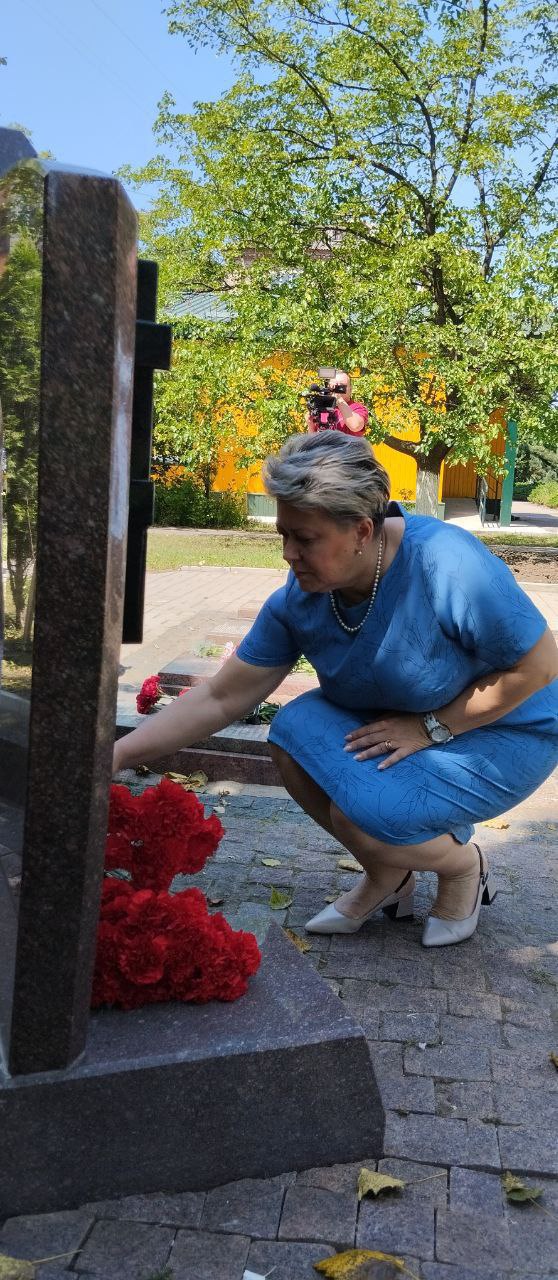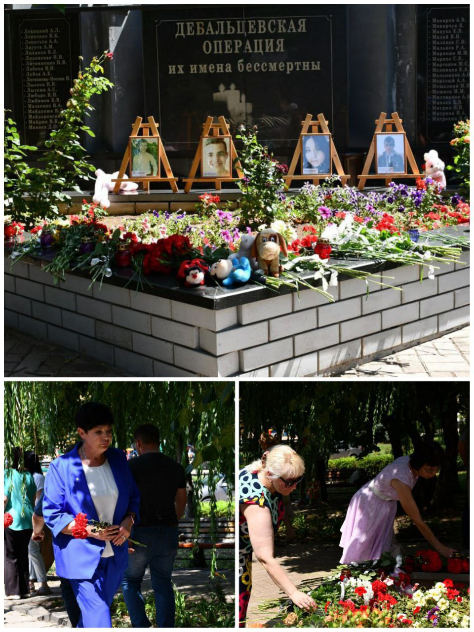 Представители Донецкого регионального отделения Союза женщин России городов Дебальцево, Торез, Донецк, Шахтерск, других населенных пунктов ДНР возложили цветы к монументам и почтили память погибших минутой молчания.