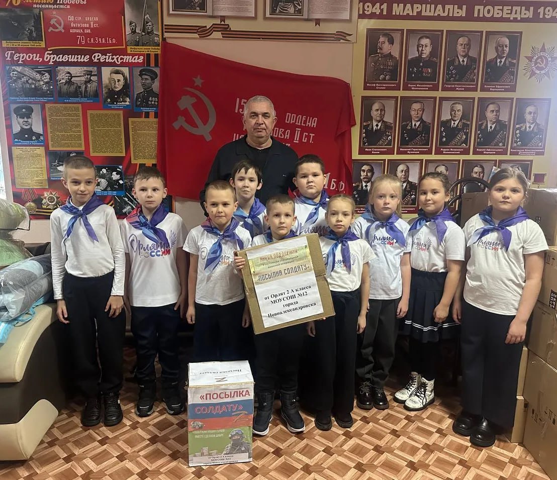 Под руководством директора школы, члена Совета женщин Новоалександровского округа Елены Владимировны Каграманян и классного руководителя Светланы Васильевны Пархоменко "орлята" 2 «А» класса средней школы № 12 города Новоалександровска собрали посылки для участников СВО. Конечно, детям помогали родители. В акции приняли участие и члены местного Совета ветеранов.
