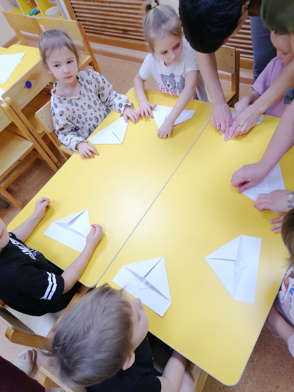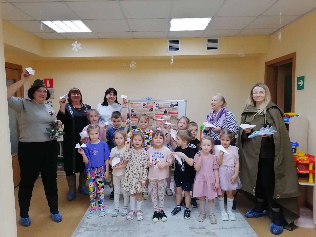 История о женщине-летчике удивила и заинтересовала дошколят. В поддержку ее героических полетов дети под руководством активисток создали из бумаги маленькие самолетики, которые по окончании занятия взмыли в воздух. Восторгу ребятни не было предела.
