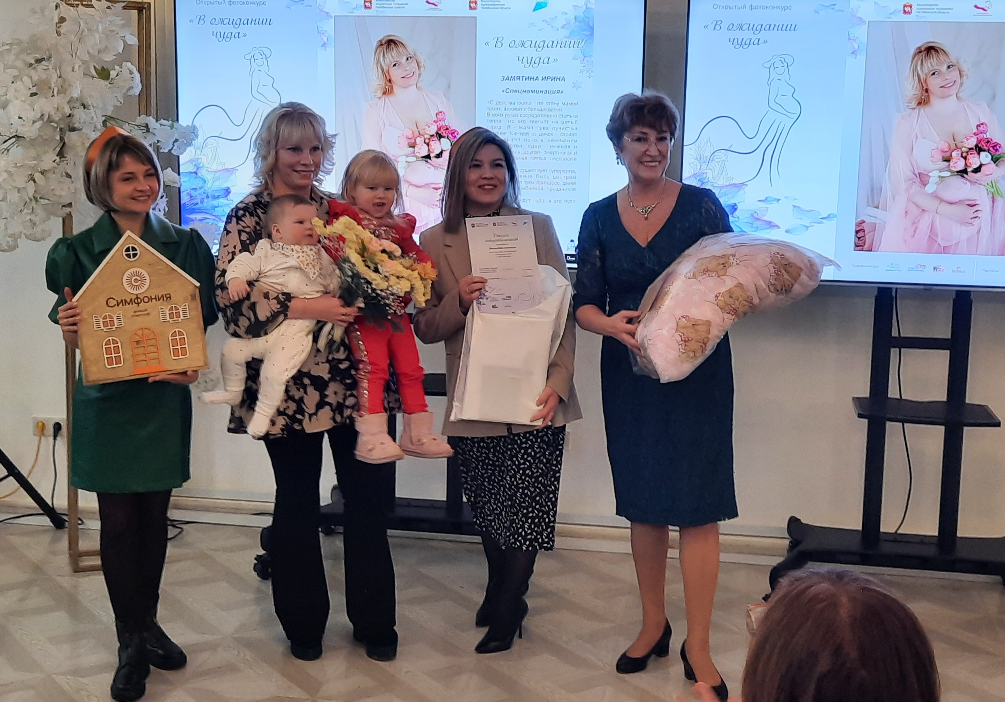 12 декабря в Доме Общественного собрания состоялось торжественное награждение победительниц. Многие пришли на праздник семьями, кто-то даже с новорождённым, но большинство женщин были в моменте трепетного ожидания. Это добавляло мероприятию особую трогательность.