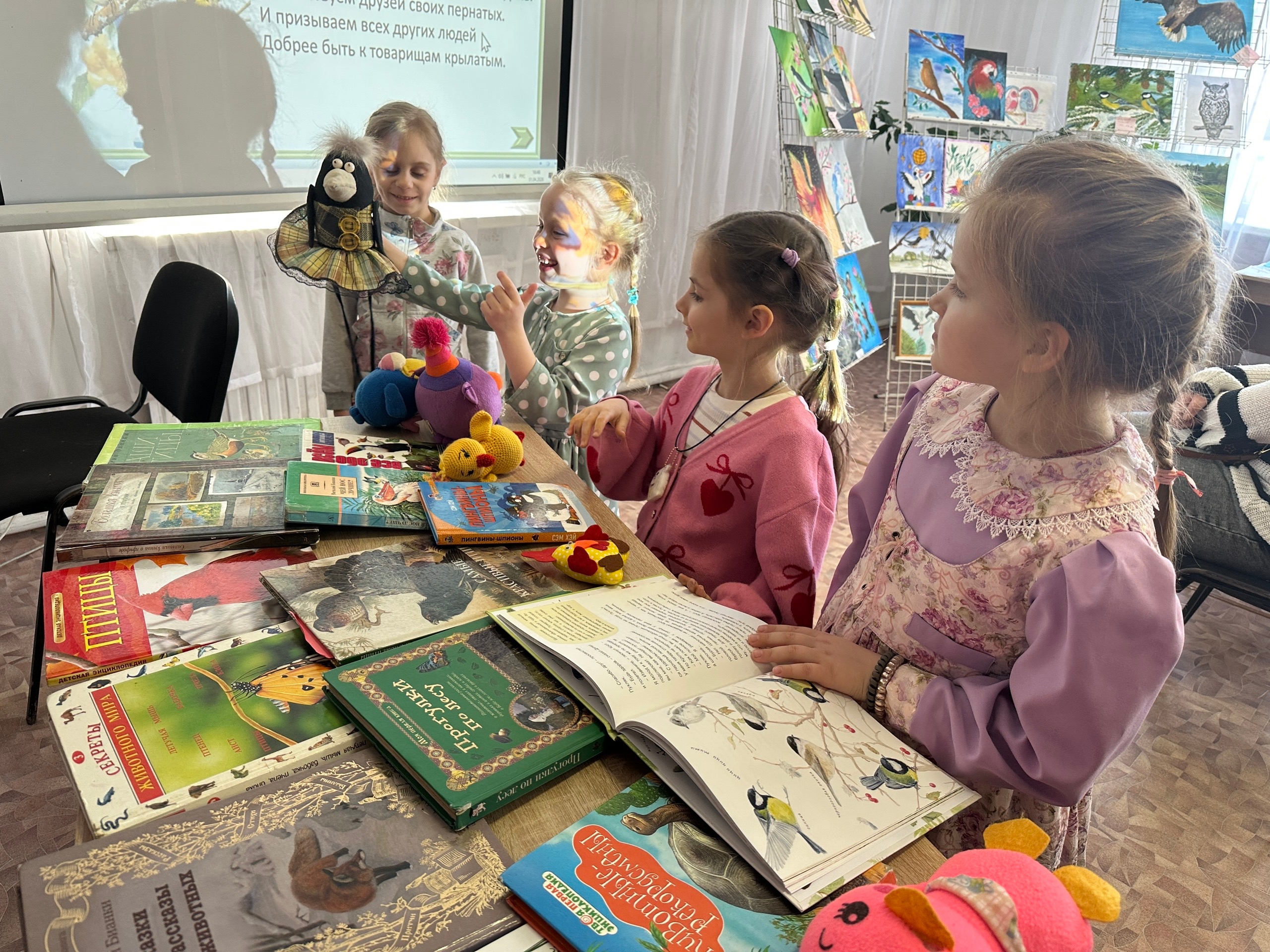 В Псковской области в честь Международного дня птиц (1 апреля) Гдовская районная библиотека распахнула свои двери для юных любителей природы. Встречу организовал Гдовский женсовет совместно с библиотекой. О мероприятии нам рассказали активистки Антонина Веселова и Ольга Галахова.