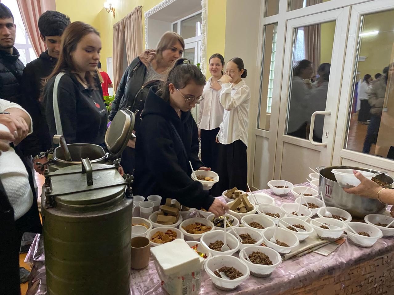 После концерта всех ждала вкуснейшая полевая каша и ароматный чай. Союзницы угощали всех конфетами, печеньем и вафлями.