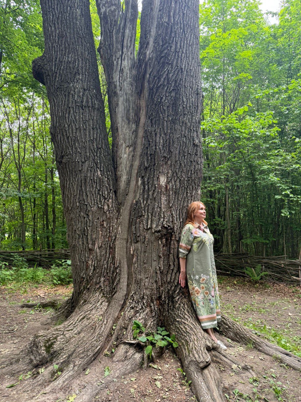 Подруги побывали около одного из старейших в Чувашии дубов, которому более 400 лет. Дерево высотой 30 метров и пяти метров в обхвате является сакральным местом древних чувашей, его называют кереметь.