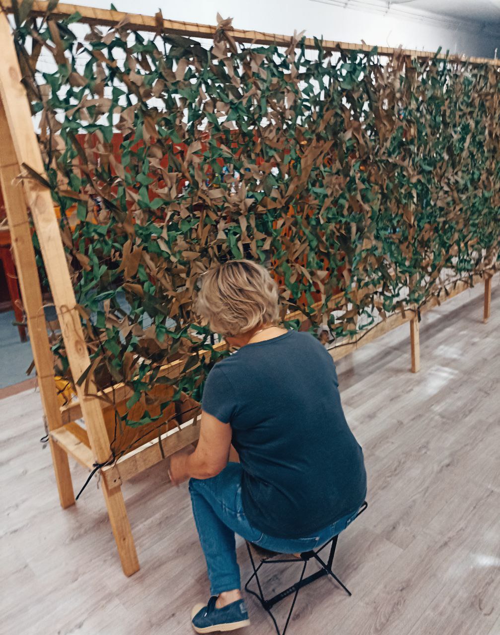 "Маскировочные сети — такая нужная помощь нашим защитникам! Ручной труд и тепло женской души напомнят бойцам, что их ждут дома и верят только в Победу! ", - говорит активистка женсовета Елена.