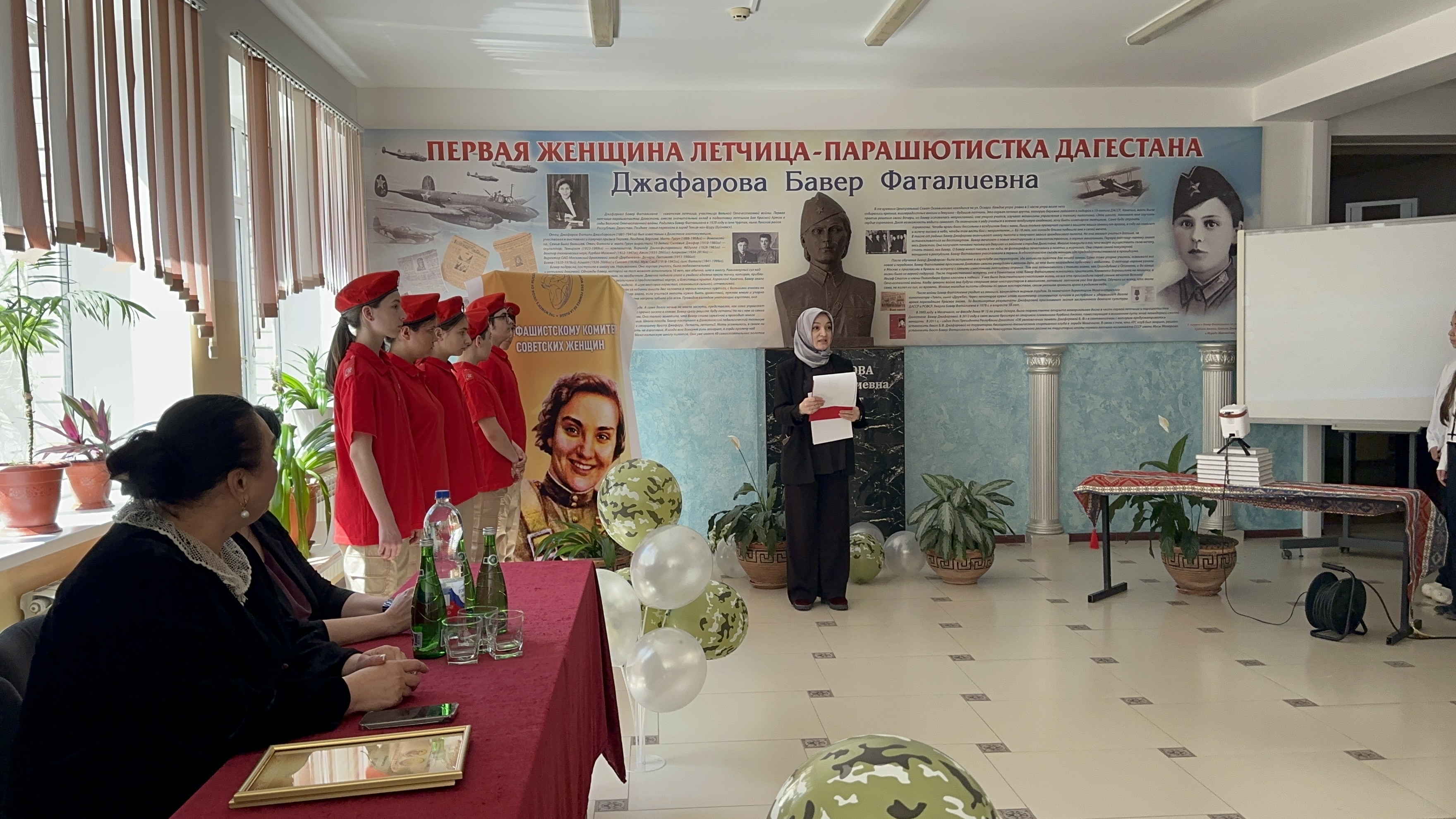 Помимо рассказа о Валентине Гризодубовой, учащиеся представили биографию гордости Дагестана — Бавер Фаталиевны Джафаровой — первой женщины‑лётчицы-парашютистки Дагестана, участницы Великой Отечественной войны.