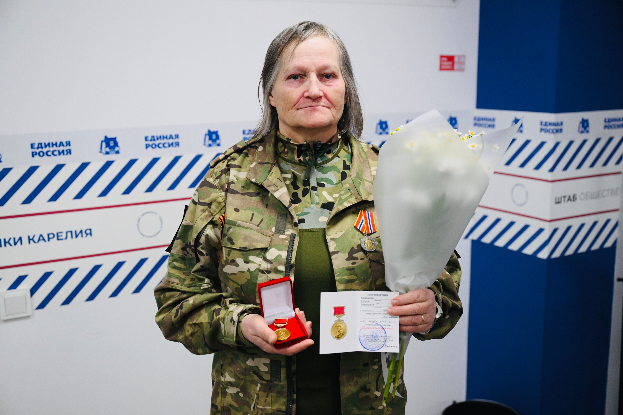 Особенно почётным стало вручение медали многодетной маме Ольге Кравцовой. Мы уже писали об этой невероятной женщине, которая весной этого года похоронила своего сына, героя-участника СВО, но, несмотря на тяжелейшую утрату, нашла в себе силы помогать тем, кто сейчас защищает нашу Родину.