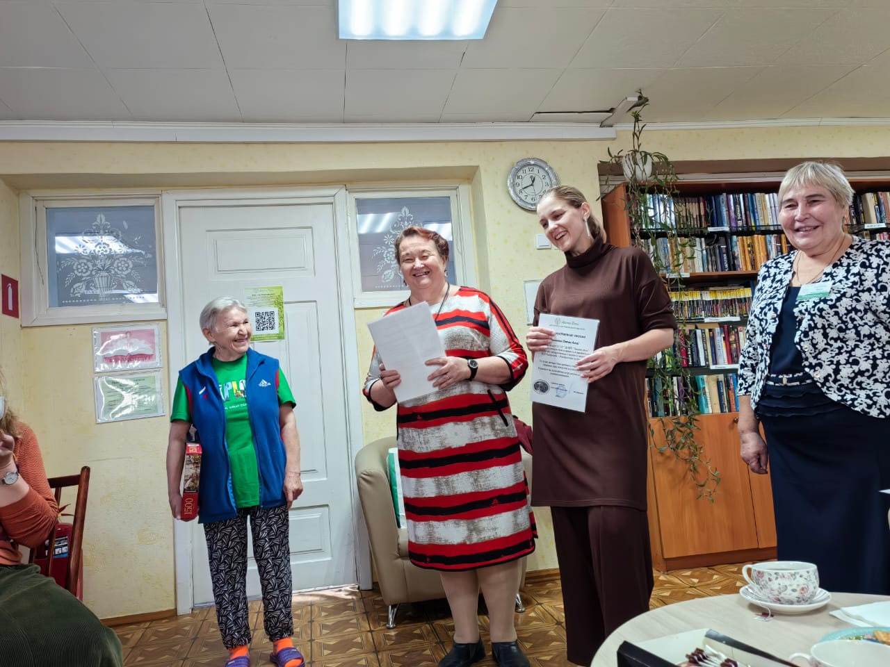 В рамках литературно-музыкальной гостиной за чашкой чая со сладостями прошёл круглый стол, в теплой дружеской атмосфере которого гости отвечали на вопросы проживающих в Доме-интернате для престарелых и инвалидов «Лесная дача» о жизни и творчестве Марии Халфиной; провели викторину «Интересные факты из жизни М.Л. Халфиной» и мастер-класс «Учимся писать красиво. Каллиграфия».