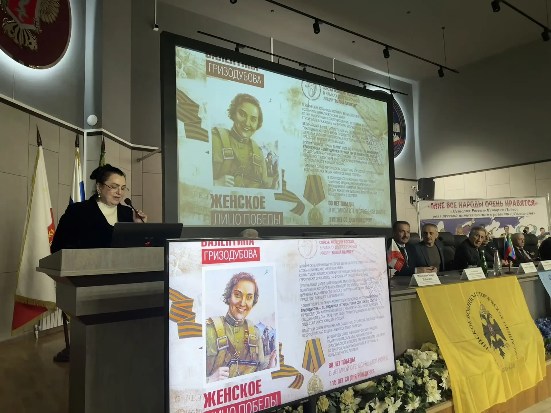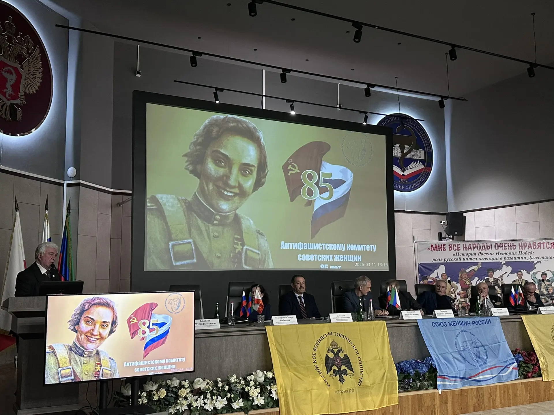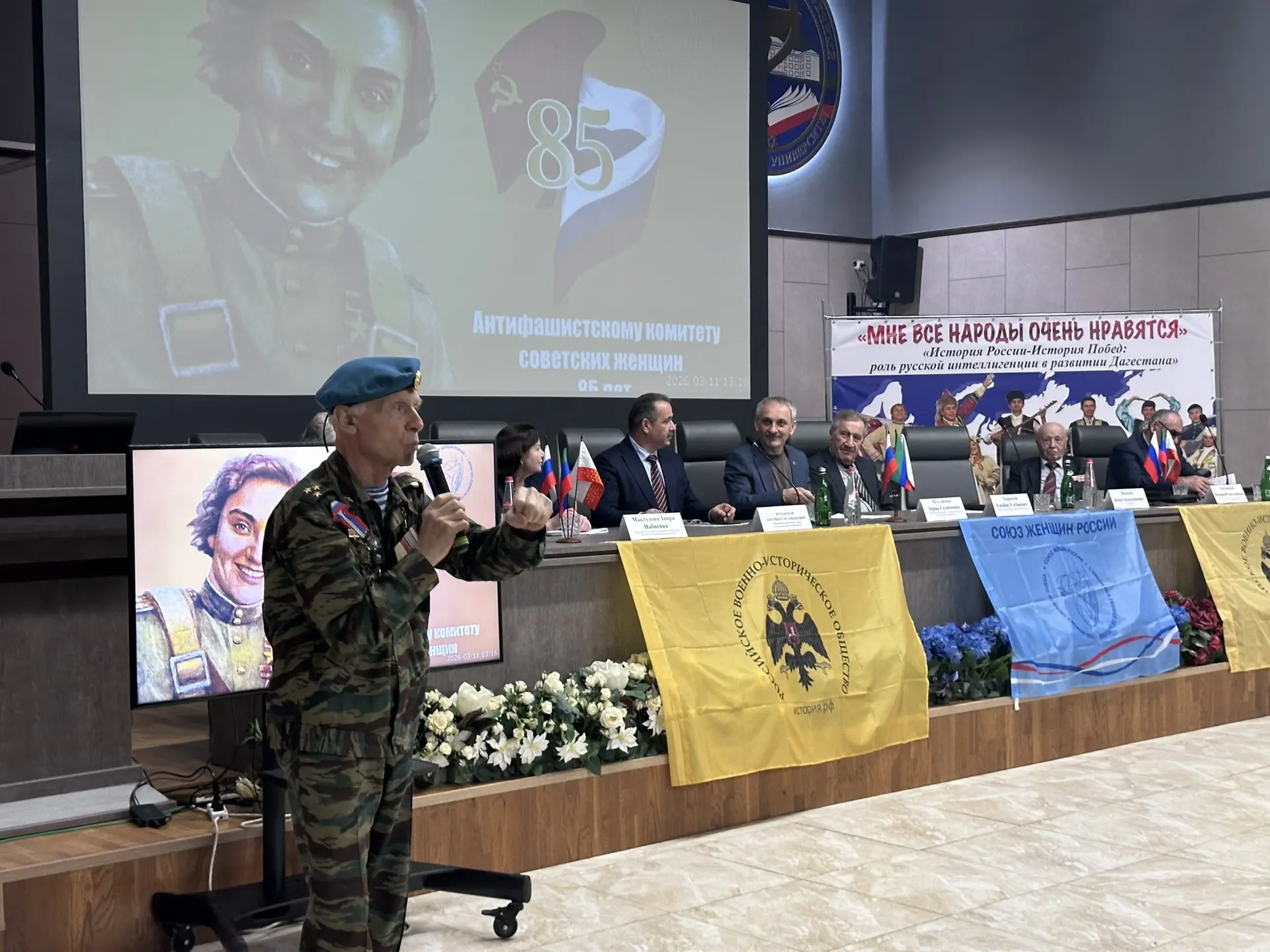В год 85-летия Антифашистского комитета советских женщин особое внимание на конференции было уделено жизни и подвигам первого председателя АКСЖ Валентины Гризодубовой - легендарной советской лётчицы, первой женщины-Героя Советского Союза.