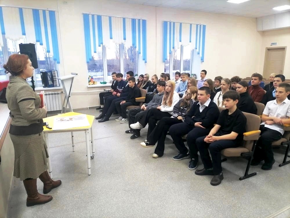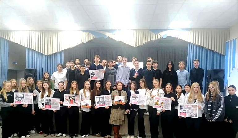 23 декабря член президиума Союза женщин Липецкой области Вероника Александровна Казакова провела встречу с учащимися школы села Кузьминские Отвержки имени Героя Советского Союза Н.П. Лапшова. Поводом для общения с ребятами послужили закрытие Года защитника Отечества и 85-летие Антифашистского комитета советских женщин, которое будет отмечаться в наступающем 2026-м.