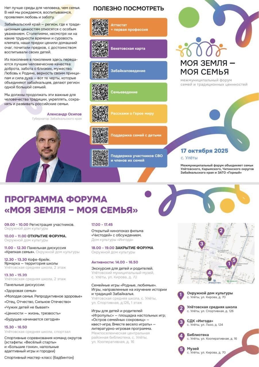 Первый межмуниципальный Форум семей и традиционных ценностей «Моя земля - моя семья» состоялся 17 октября в селе Улёты Забайкальского края. Активное участие в мероприятии приняли союзницы Забайкальского регионального отделения СЖР. Форум объединил семьи Улетовского, Карымского, Читинского округов и ЗАТО «Горный».