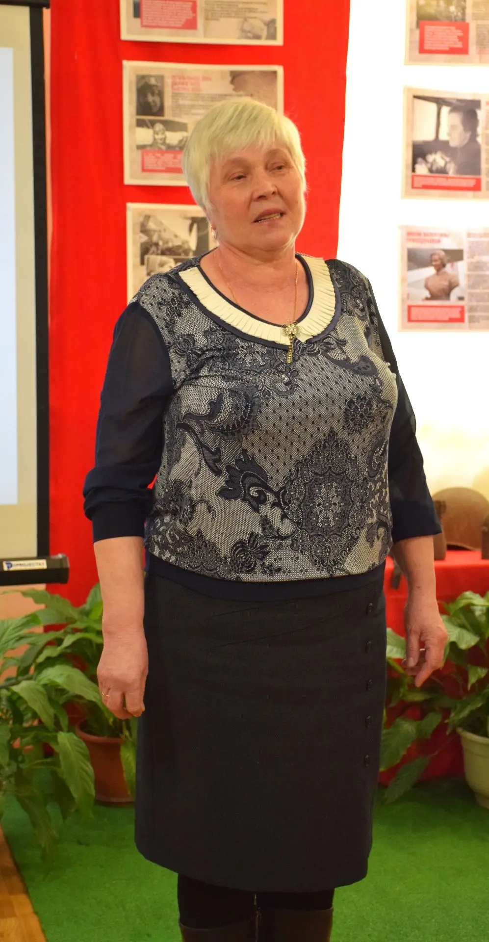 Активистка женсовета, директор Детской школы искусств Екатерина Владимировна Каверина организовала к мероприятию выставку детского рисунка и представила творческий номер «Катюша» в исполнении Ивана Жинкина (преподаватели Мячин Н.В., Баскакова О.С., Башкатов Н.А.).