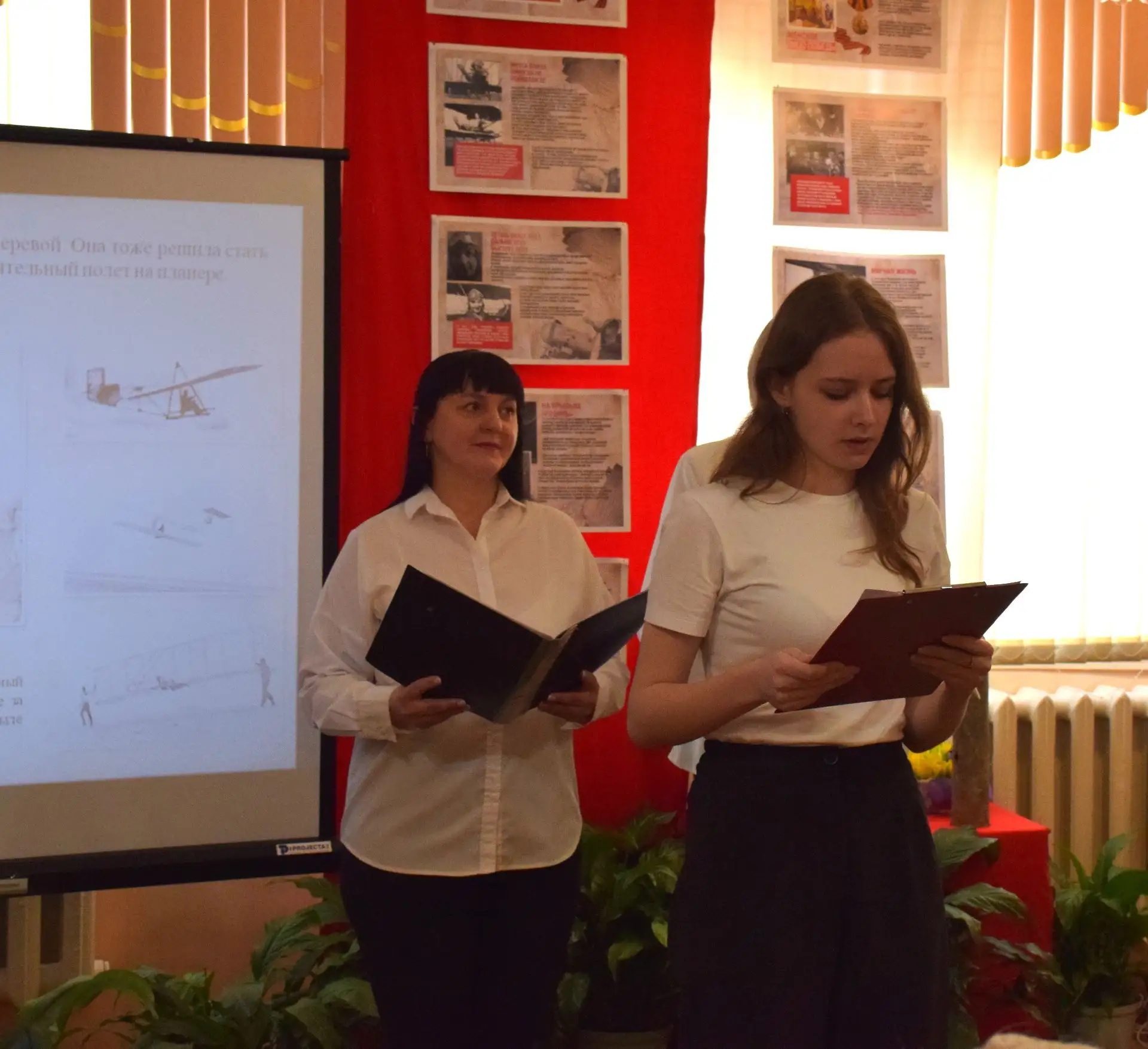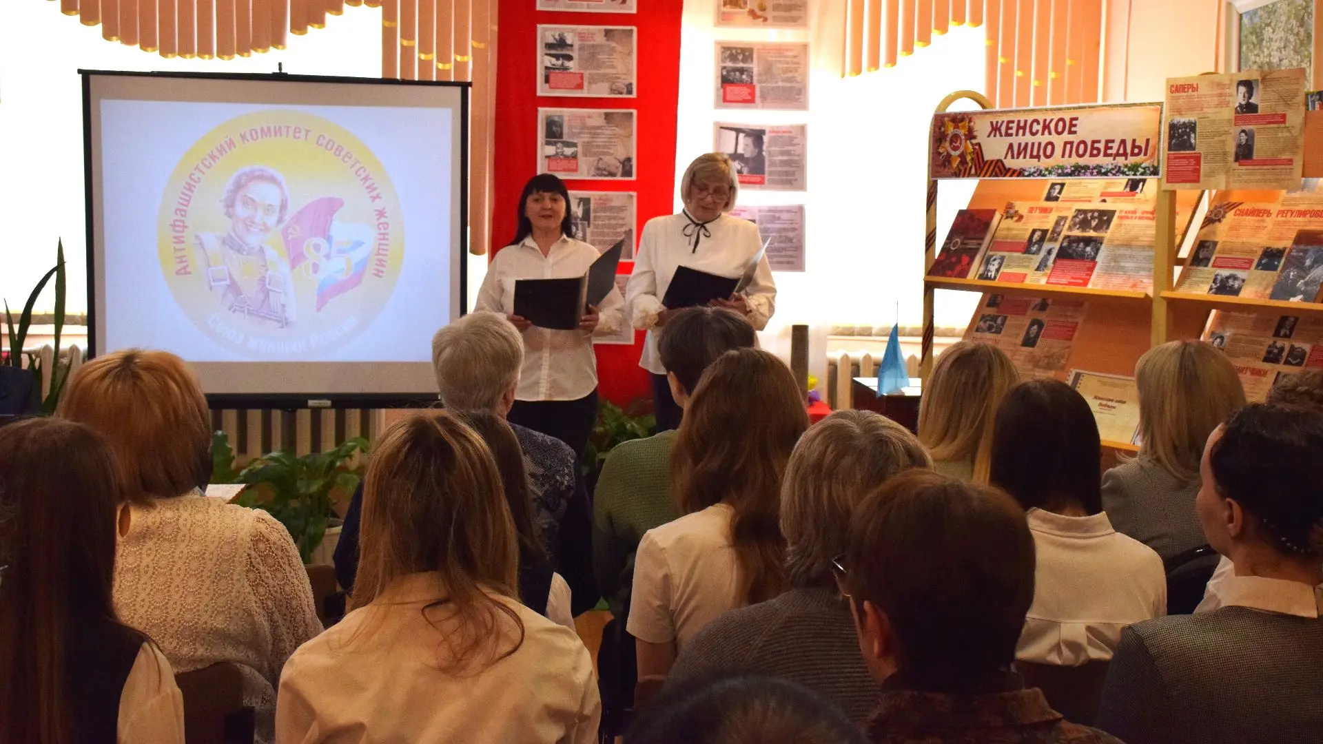 В Центральной библиотеке собрались школьники, студенты, читателей старшего возраста. Событие, приуроченное к 85-летию создания Антифашистского комитета советских женщин, посвящено памяти основателя и первого председателя АКСЖ, легендарной летчицы Валентины Степановны Гризодубовой.