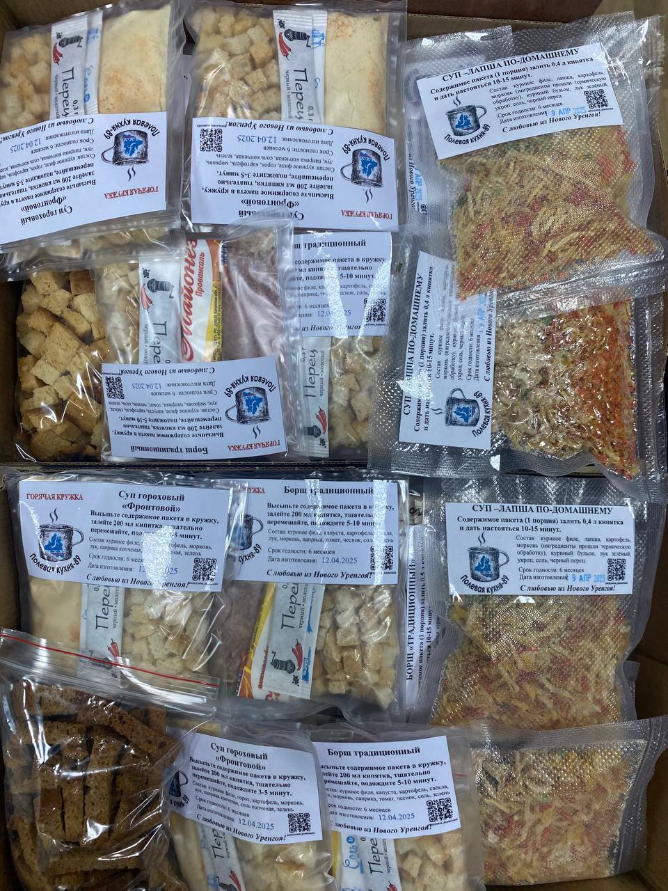 Активистки Новоуренгойского женсовета из волонтёрской группы «Полевая кухня-89» ежедневно трудятся, чтобы бойцы в зоне проведения специальной военной операции получали вкусные и сытные блюда. Сублимированные супы, каши и вторые блюда - всё это готовится в полевых условиях за считанные минуты, не требуя варки. Такие домашние вкусности помогают военным согреться и восстановить силы.