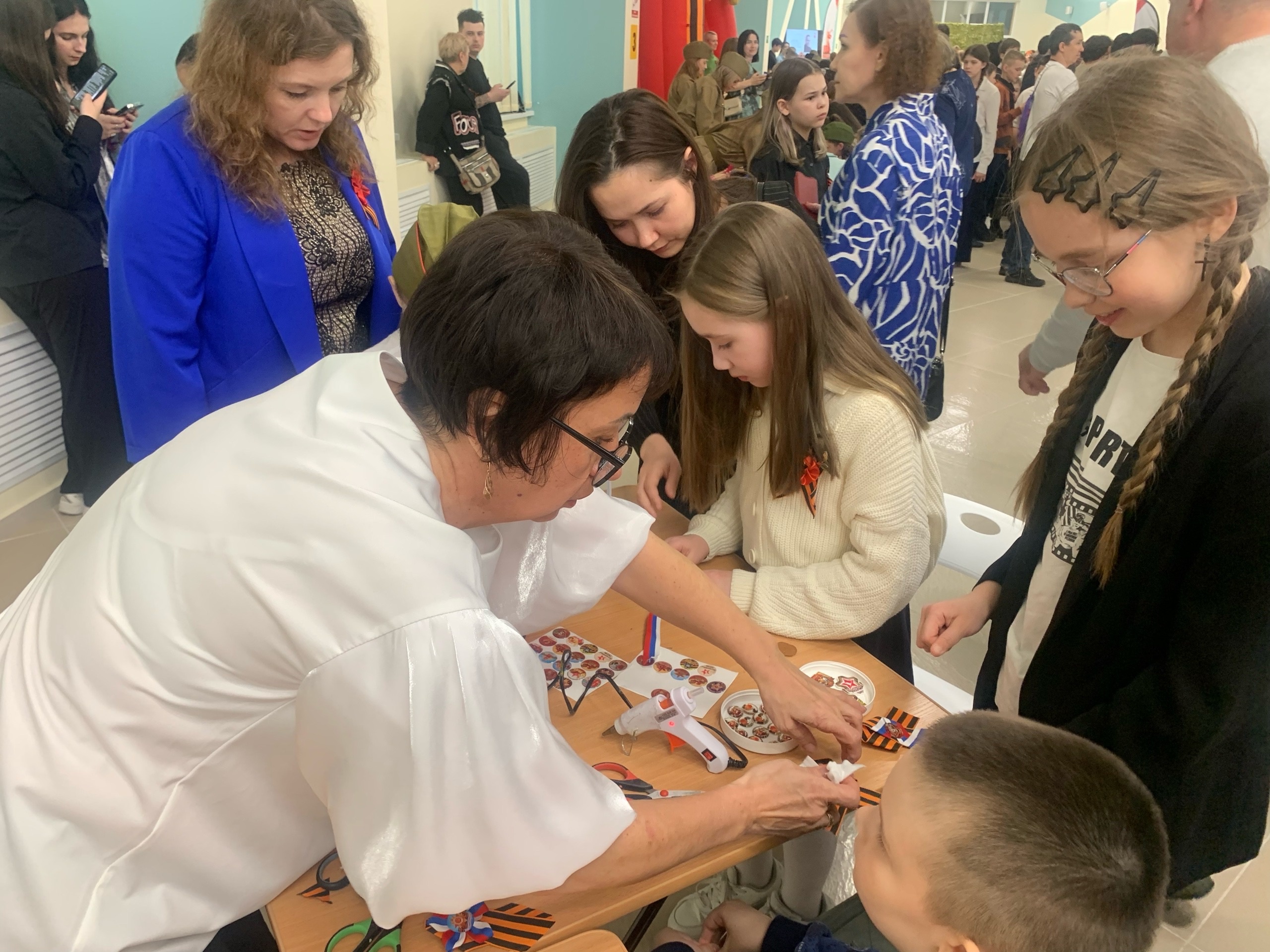 А накануне во Дворце спорта «Звёздный» состоялась торжественная программа «Победный май». Участницы женсовета подготовили и провели для горожан мастер-классы по изготовлению праздничных георгиевских лент.