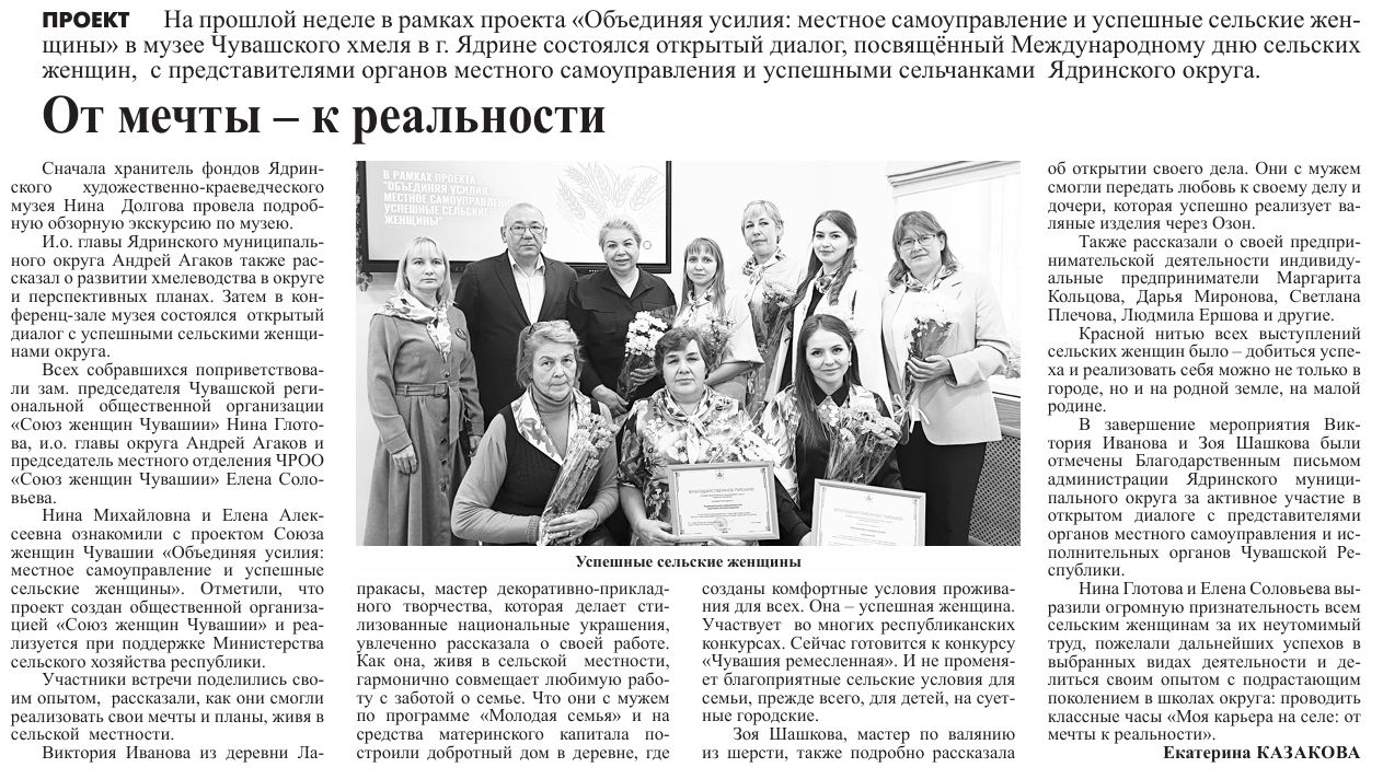 Об успешных сельчанках Чувашии – печатной строкой
